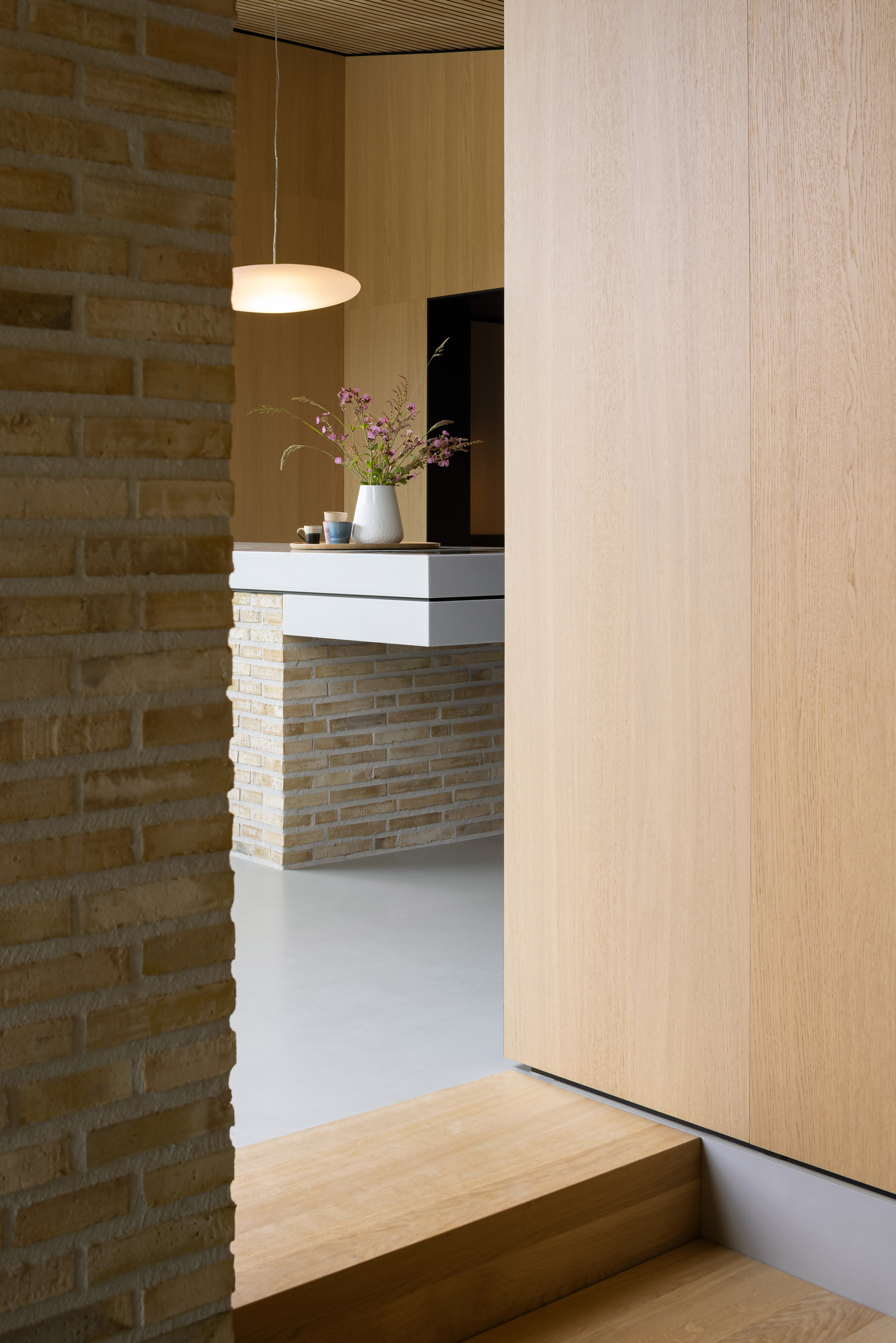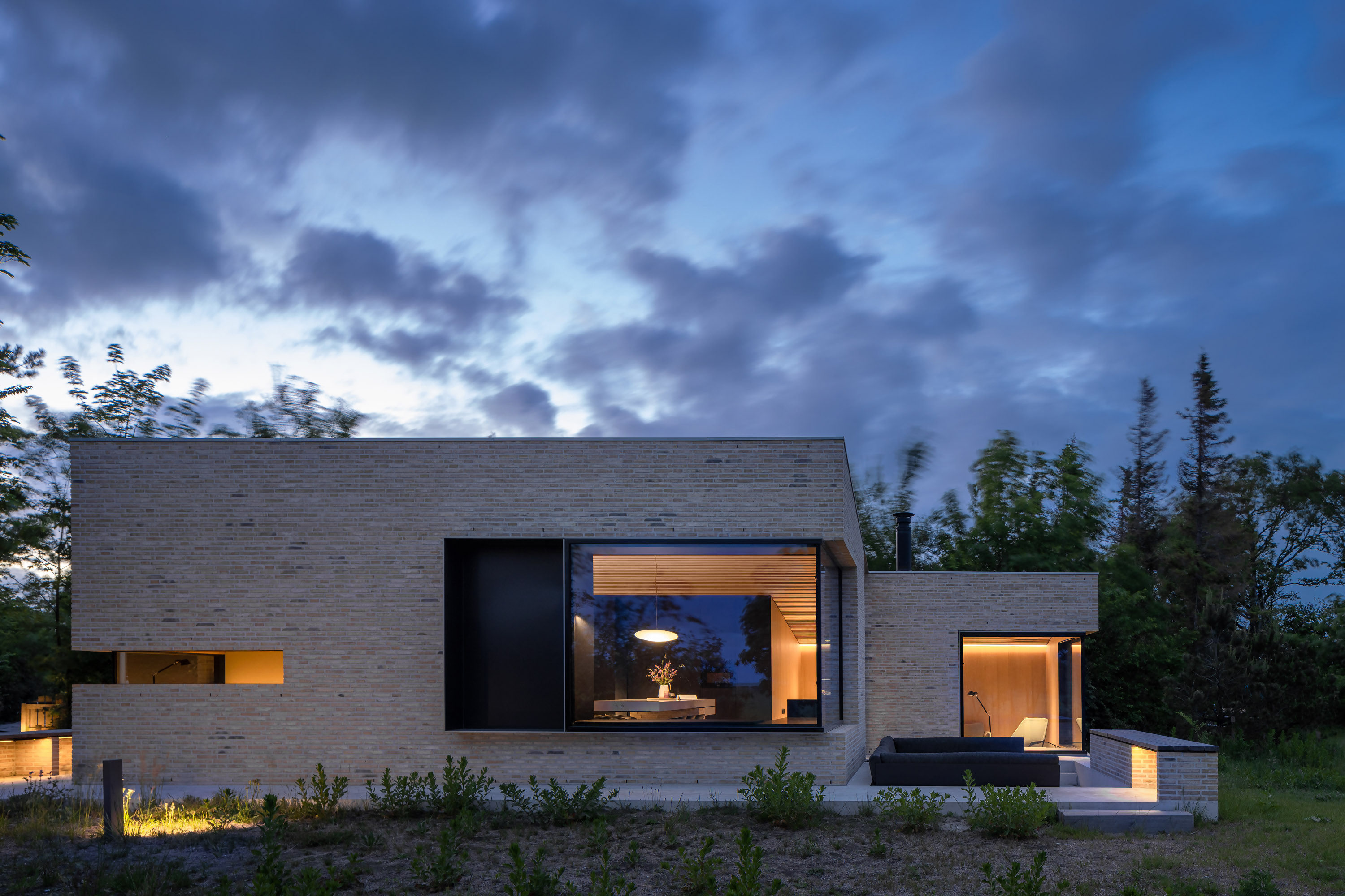 We hebben ervoor gekozen om het doorgaans ondergrondse fundament van de woning juist zichtbaar te maken. Een stevig basement waarop de woning staat maar waar ook ruimtes in verzonken zijn. Dit zorgt ervoor dat de woning verankerd wordt op het eiland en samen met het metselwerk het lichte houtskeletbouw casco beschermd.