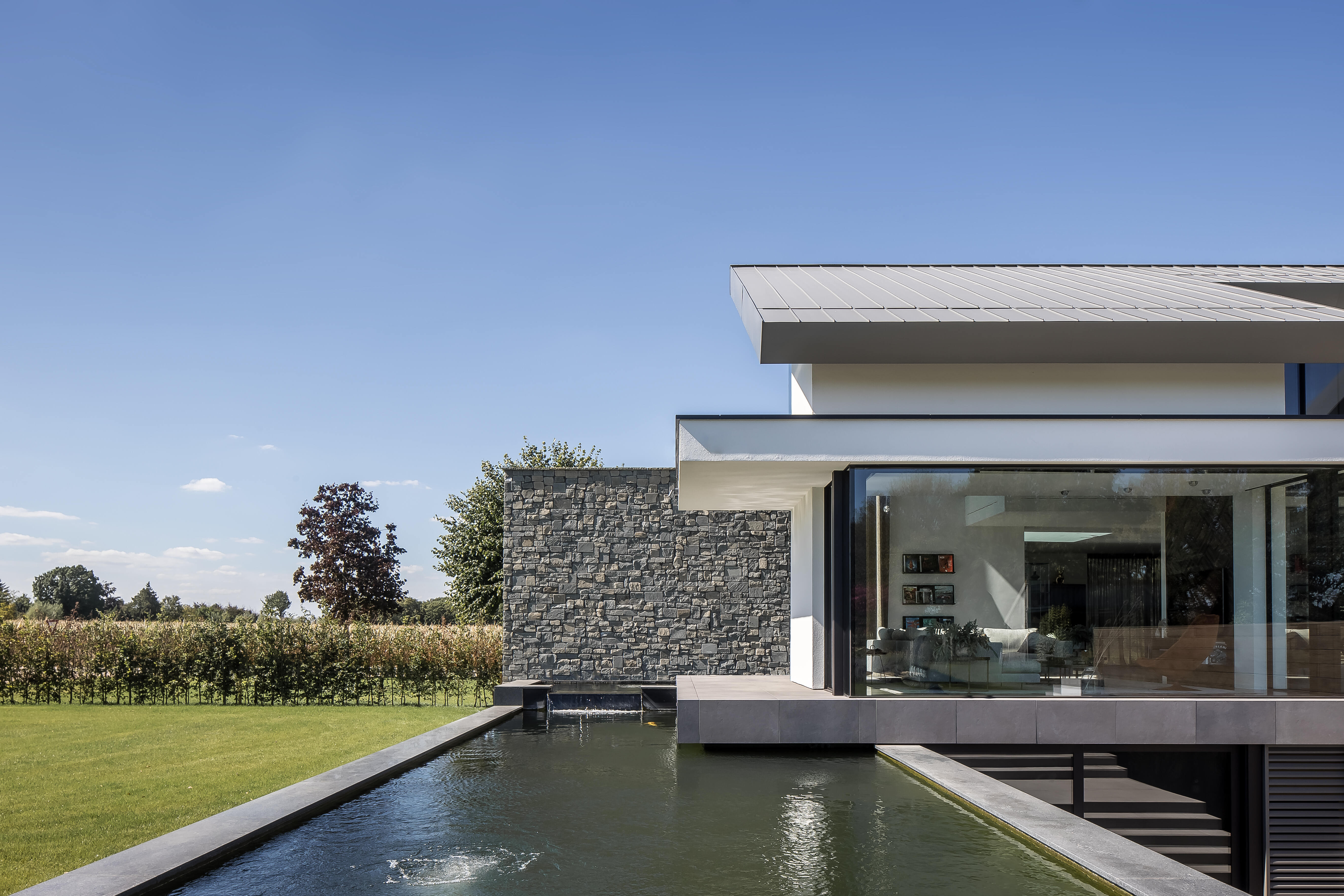 The house-around the wall is ontstaan uit een combinatie van woonwensen, een hechte verbondenheid met de Limburgse identiteit en de specifieke agrarische locatie. De woning is een eigentijdse vertaling van de historische iconische stapelmuren. De 57 meter lange wand groepeert boven maaiveld de volumes met -ondergronds- een verrassend souterrain.