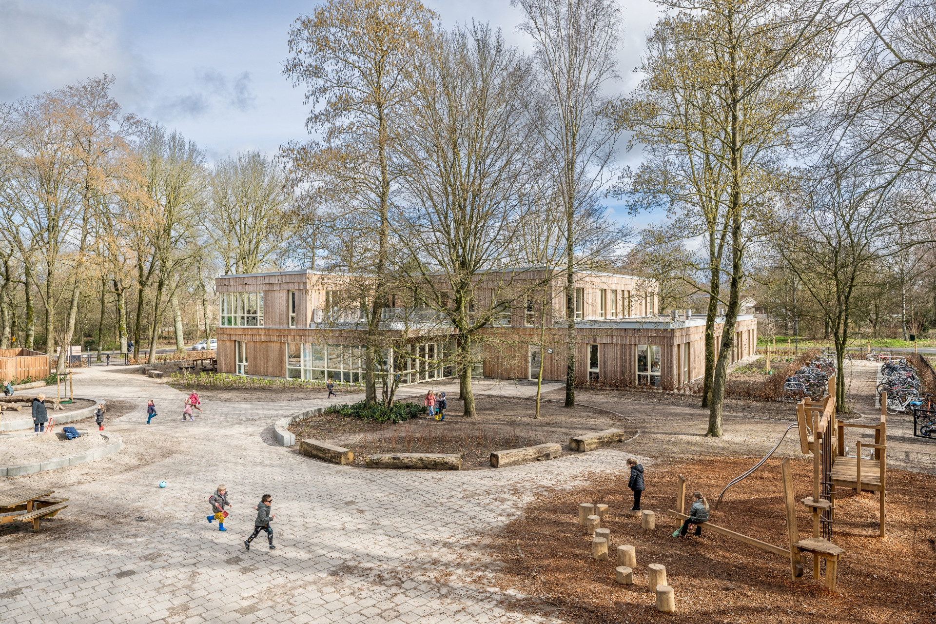 Onderbouw en kinderdagverblijf liggen beschut en hebben hun eigen ingang. De onderbouw heeft ook haar eigen leer/speelplein, waardoor de kleine kinderen vrij kunnen spelen en echt de ruimte hebben met verschillende ontwikkel- en speelhoeken.