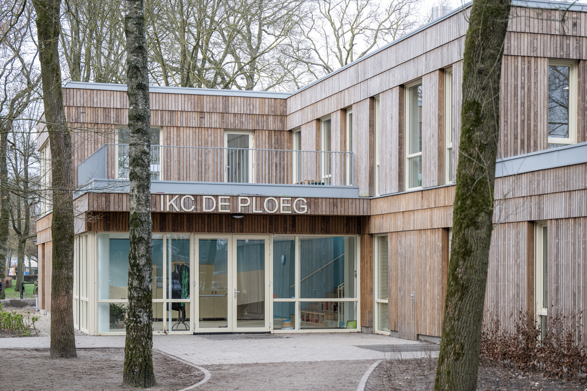 Het IKC De Ploeg ligt in een park, groene long, in de groene woonwijk. Het uitgangspunt voor het ontwerp van IKC De Ploeg is het motto van de school ”open en gastvrij". De ligging in het groen, de open en natuurlijke uitstraling van de school zorgt voor een stimulerende omgeving voor de kinderen, de leerkrachten en de buurt.
