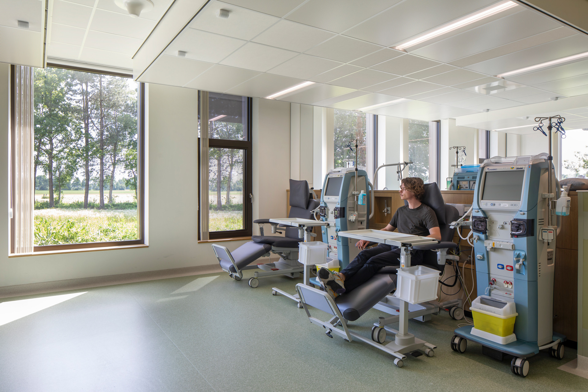 Steeds vaker wordt de helende kracht van de natuur bewezen. Waar in de meeste ziekenhuizen - door de ligging in de stad of aan een drukke weg - de natuur via prints, kunst of plantenbakken naar binnen moet worden gebracht, is zij híer nadrukkelijk aanwezig en van hoge kwaliteit. Deze hebben we dan ook zoveel mogelijk benut. Ondanks de grote begane grond is overal voldoende daglicht. Wachtplekken zijn altijd aan de gevel en elke gang heeft een oriëntatiemoment op het landschap of op de patio's. Patiënten die het langst moeten blijven zijn gesitueerd op de mooiste plek met het beste uitzicht. Vlak voor hun raam vliegen de ooievaars af en aan vanaf hun nest. Er zijn 'uit-je-bed' plekken en een speciale beweegroute ontworpen. Gebruik van hout en natuurlijke kleuren trekken de natuur door naar binnen en zorgen voor een gemoedelijke sfeer. Al deze kleine dingen dragen bij aan de kleine of grote stappen naar herstel.
