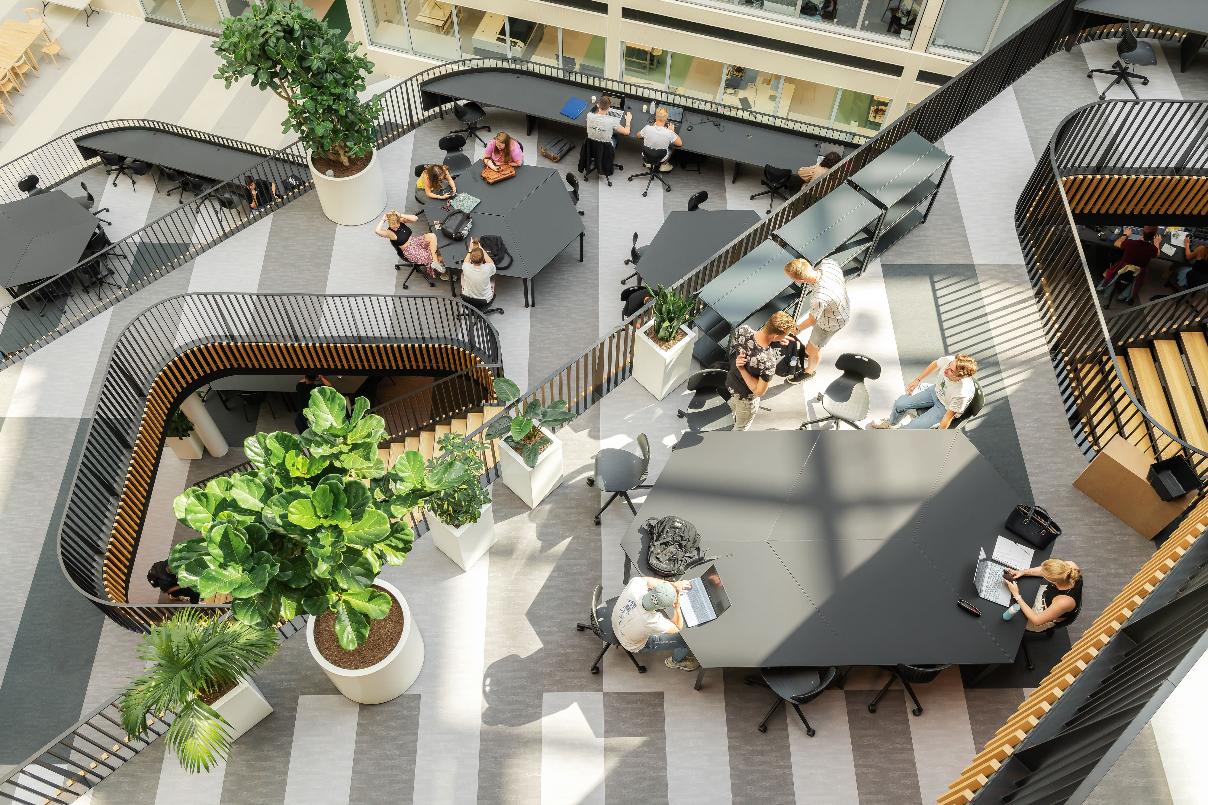 Jakoba Mulderhuis vormt het sluitstuk van de Amstelcampus. Het verbindt de academische wereld met de stad en sluit stedenbouwkundig aan op omliggende, monumentale gebouwen. Het ontwerp stimuleert interactie en delen van kennis door overzichtelijke vloeren rondom het atrium. Het flexibele interieur biedt ruimte aan toekomstige onderwijsvisies.