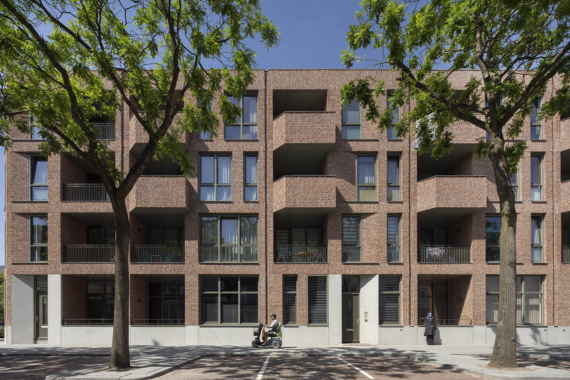 De Slaghekbuurt heeft 53 ruime appartementen en 31 fijne nieuwe eengezinswoningen met een tuin gekregen. De hoogwaardige sociale huurwoningen zijn zorgvuldig ingepast in het bestaande stedenbouwkundige weefsel en sluiten subtiel aan op de woningen in de buurt. De moderne vertaling van de open portiek geeft bewoners een veilige, sfeervolle entree.