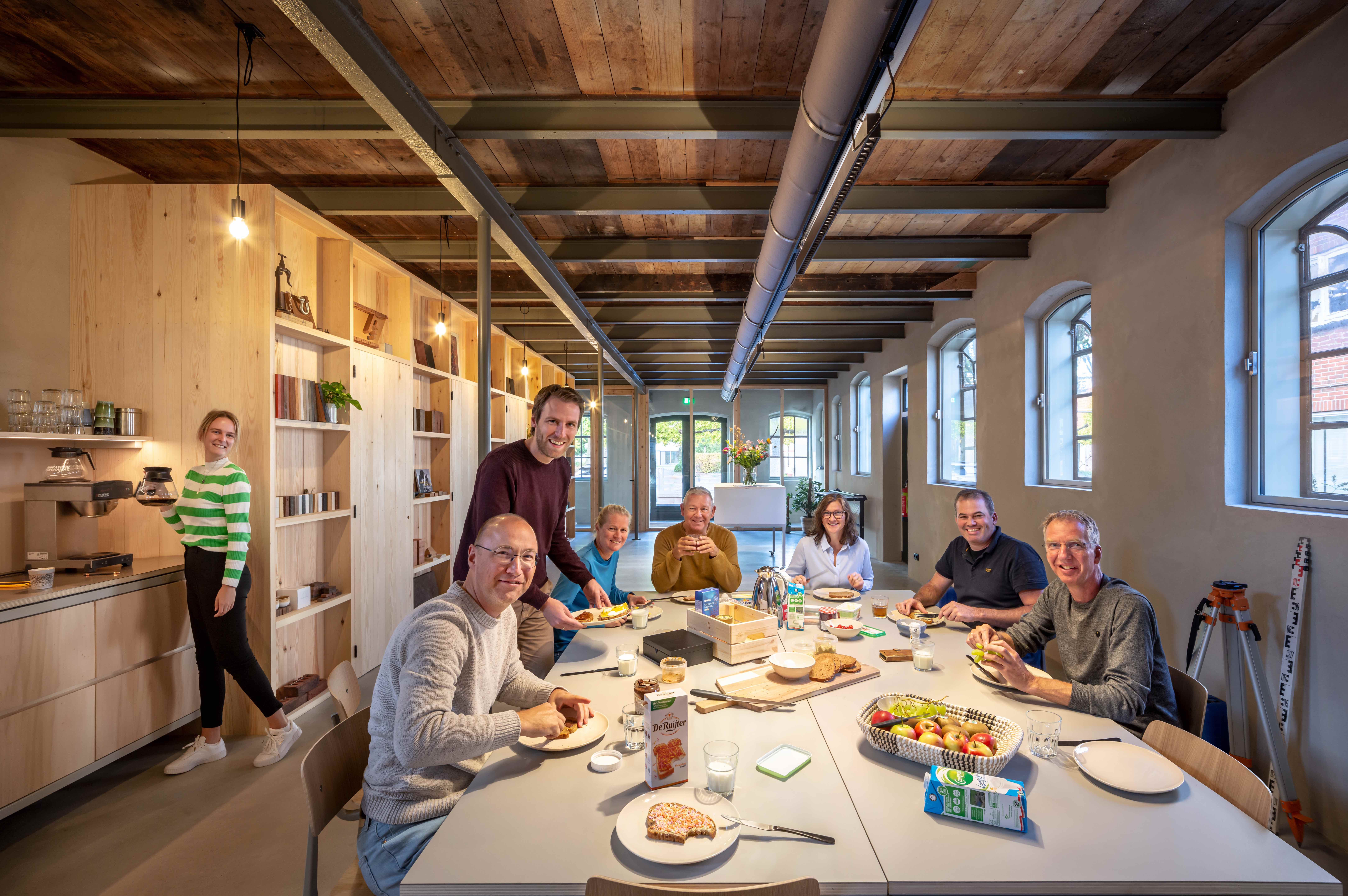 We werkten sinds de oprichting in een mooi verbouwd woonhuis. Maar het begon toch wat te kriebelen. De verouderde installatietechniek zou veel duurzamer en comfortabeler moeten. En wat als we allemaal aan één tafel zouden werken? Zou de sfeer niet wat meer ‘werkplaats/atelier’ kunnen zijn? We besloten na 30 jaar uit te kijken naar een nieuwe plek.