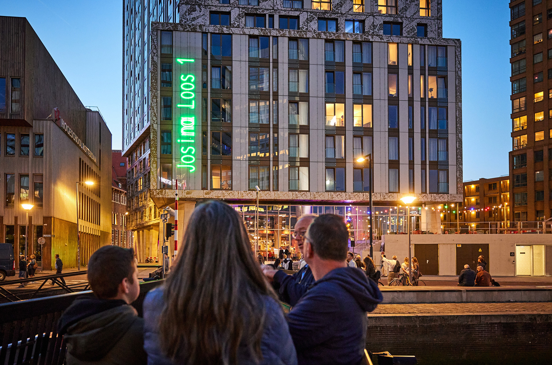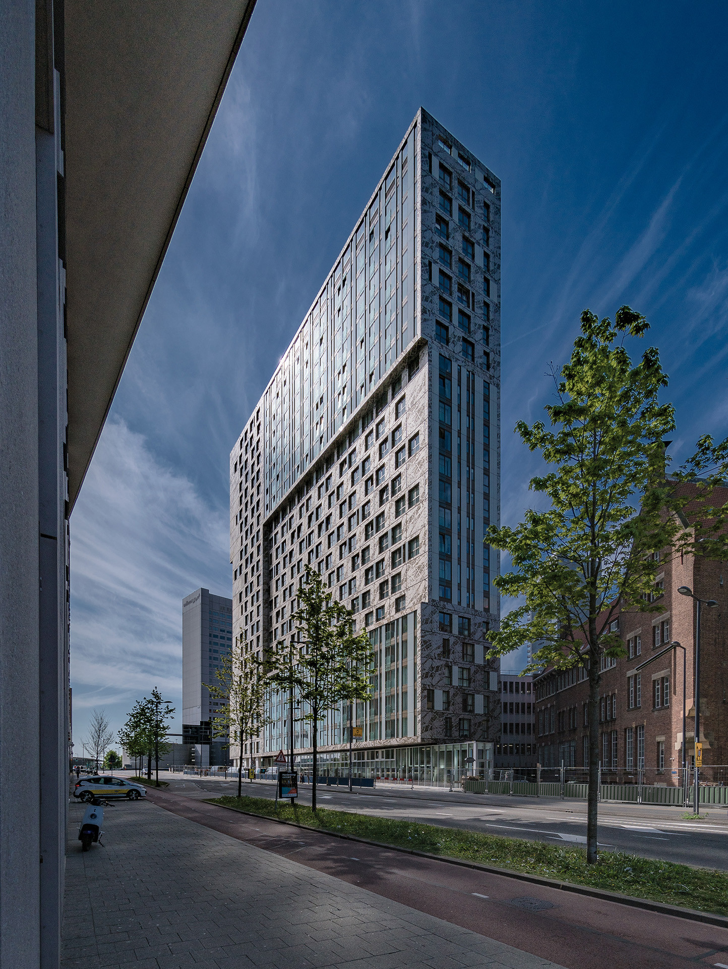 OurDomain is een groot woongebouw voor jonge mensen op een piepkleine, beladen plek in het hart van Rotterdam. Identiteit en gemeenschapsgevoel waren belangrijke drijfveren voor het ontwerp- intern tot uiting gebracht met bijzonder programma, sterk verankerd in de omgeving, met een impliciete verbeelding van de tragiek van de plek naar buiten toe.