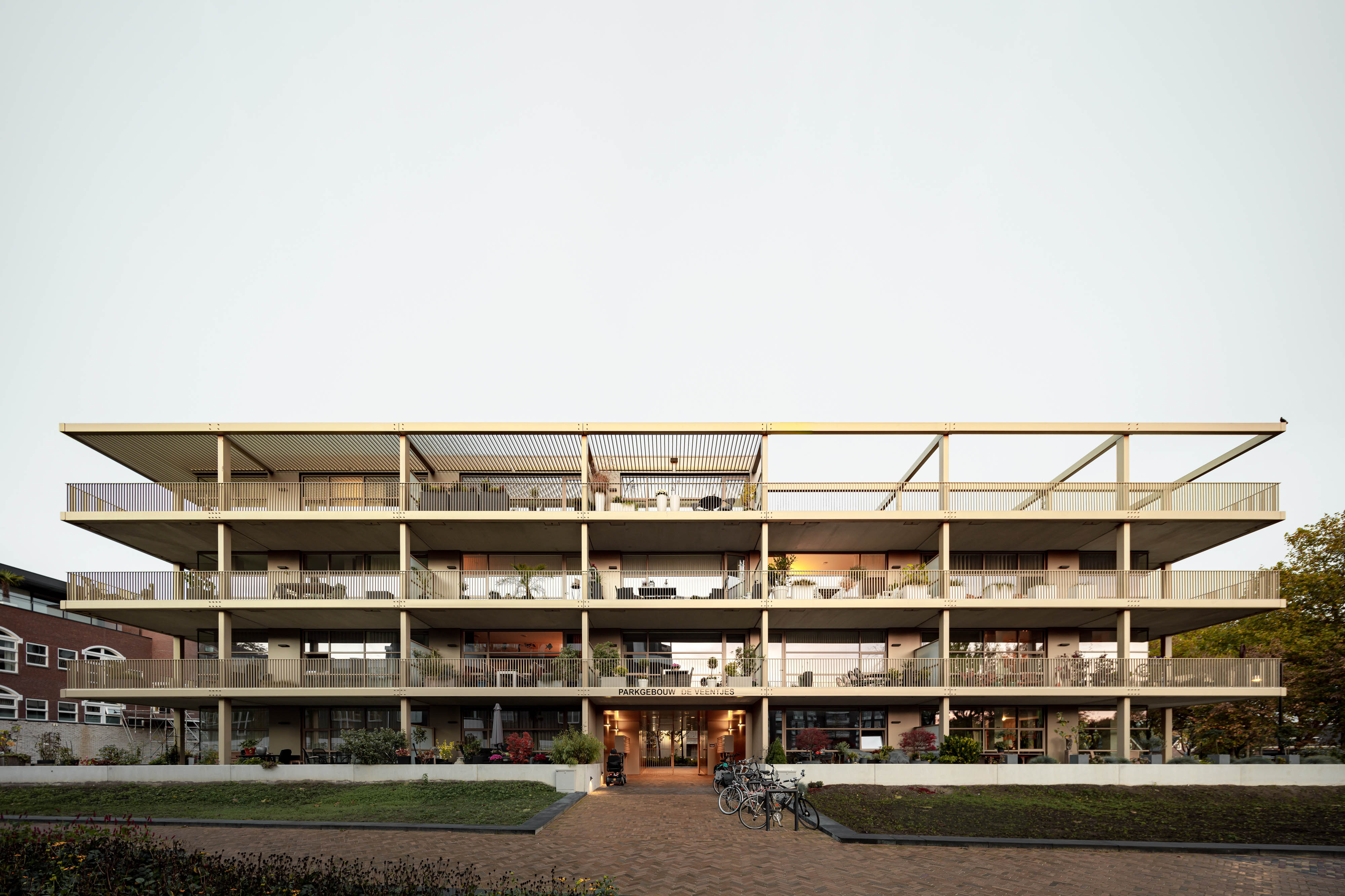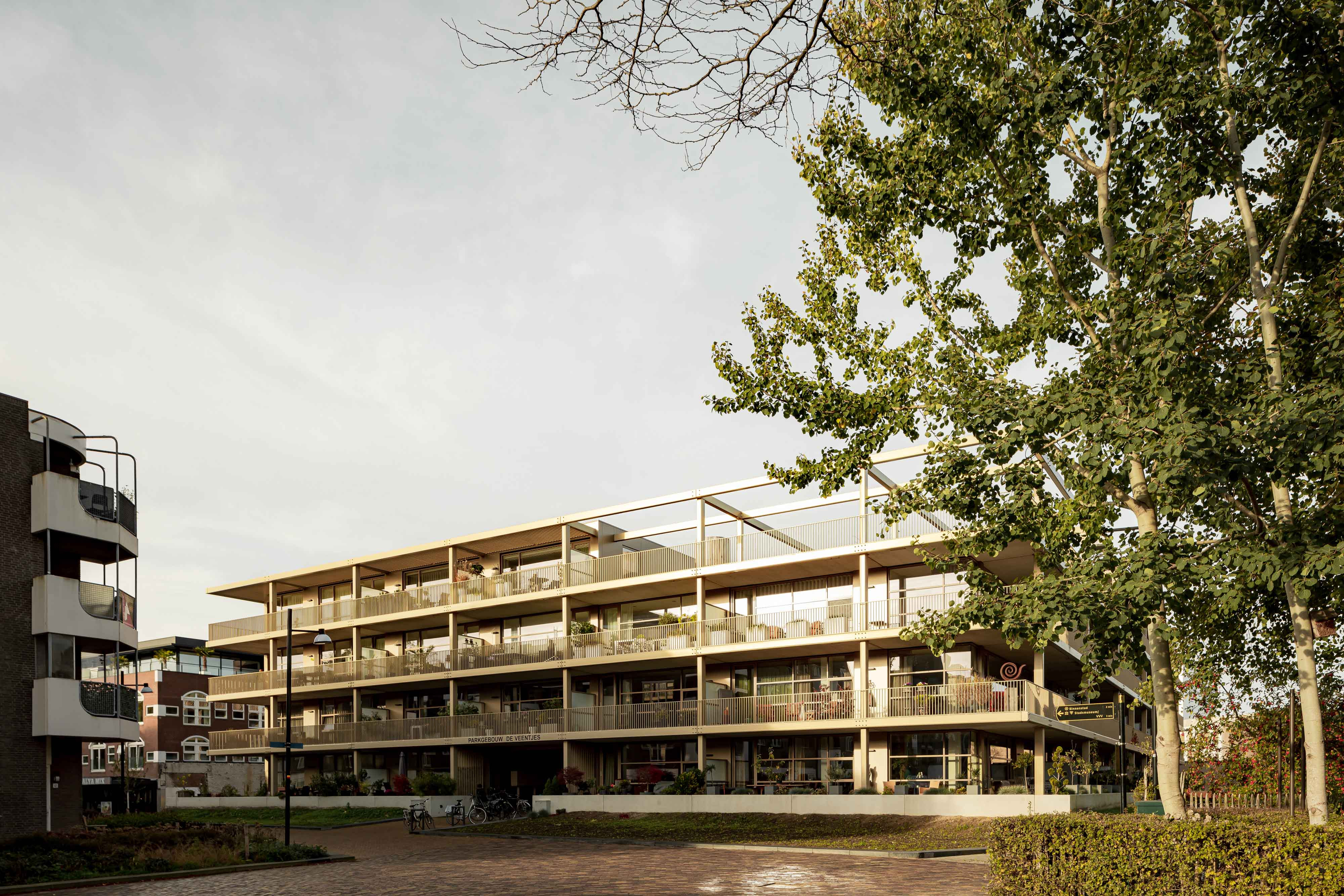 Het nieuwe woongebouw aan De Veentjes is een parkgebouw, het gebouw ontvouwt zich alzijdig met zijn terrassen naar het park en de stad. Het gebouw geeft een geheel nieuwe dimensie aan de omgeving door nieuwe verbindingen te maken en de straten weer nieuw elan te geven. Het gebouw heeft een open karakter doordat de terrassen rondom geplaatst zijn en ontvouwt door de grote glazen puien. Het groen van het park wordt om het gebouw doorgezet en ook het gebouw is ontworpen als een grote veranda die op diverse plekken begroeiing krijgt. Hiermee is het gebouw niet alleen energiezuinig en duurzaam in gebruik, maar ook een stedelijke reparatie met een krachtige impuls aan het hele gebied.