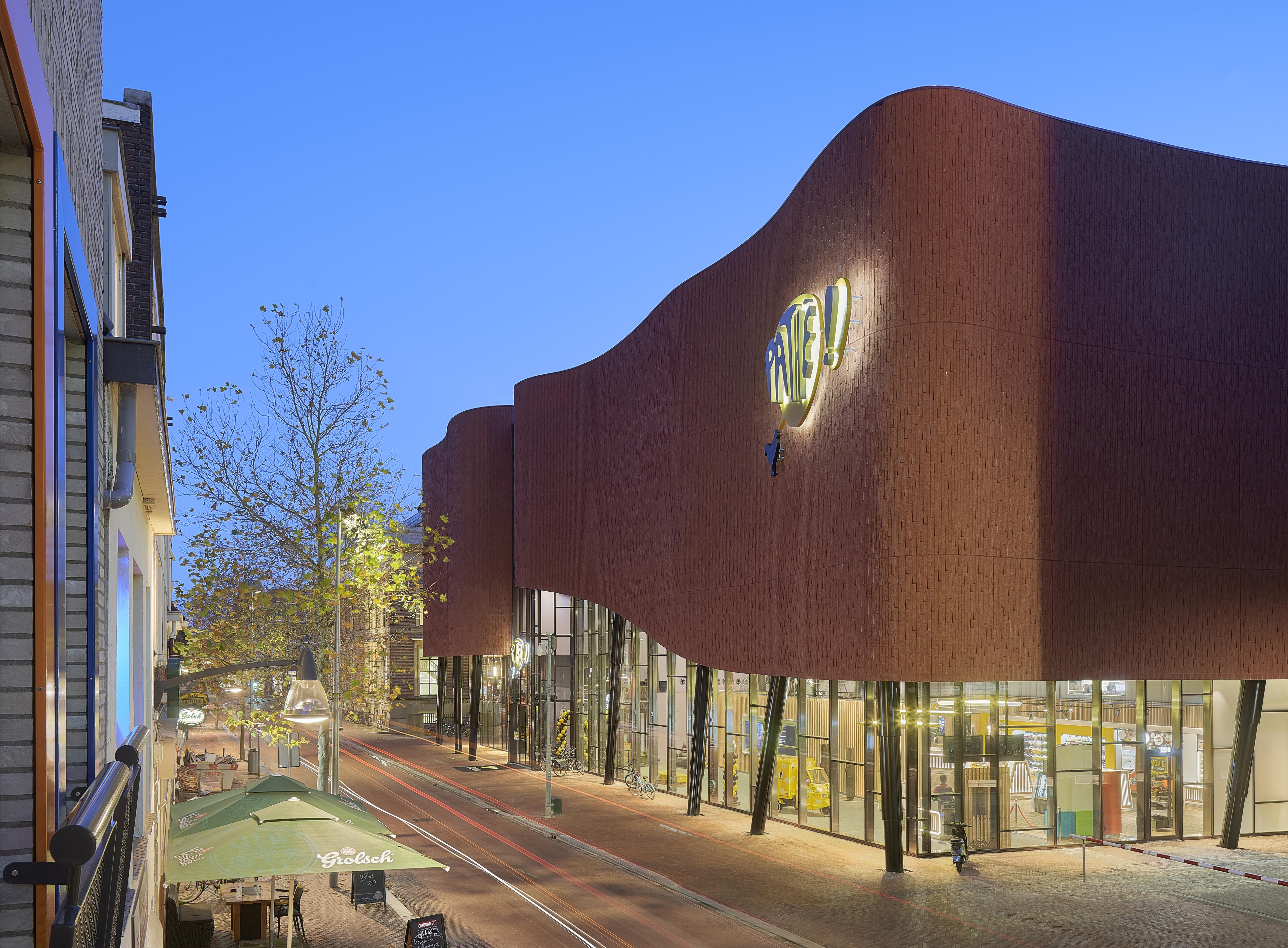 De nieuwe Pathé-bioscoop is een blikvanger in het centrum Leeuwarden. De bioscoop beschikt over zeven filmzalen. De zwierig golvende gevel, met zijn vloeiende zachte vormen, reliëfmetselwerk en kolommen als gelede poten, roept verschillende associaties op: voor de een met een theatergordijn, voor de ander met een grote grommeloeris.