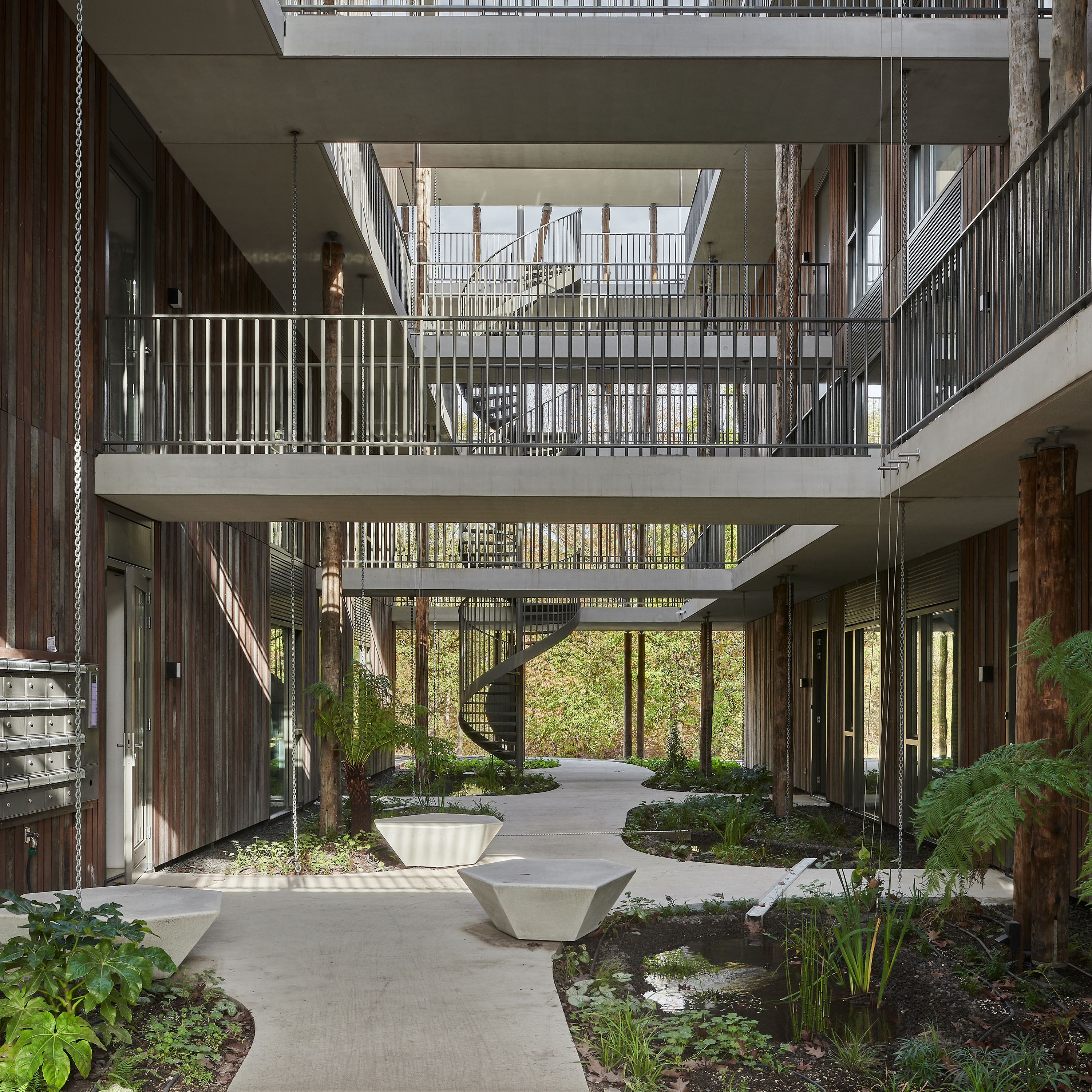 Het realiseren van een bijzondere woonomgeving met thema’s als rust, harmonie, natuurbeleving, bijzondere routing en ontmoeting was een van de redenen waarom dit project in 2019 de open prijsvraag heeft gewonnen. Het ontwerp is geïnspireerd op het Japanse gebruik Shinrin-yoku, waarbij je jezelf met al je zintuigen ‘onderdompelt’ in het bos om zo je lichaam en hoofd tot rust te brengen.