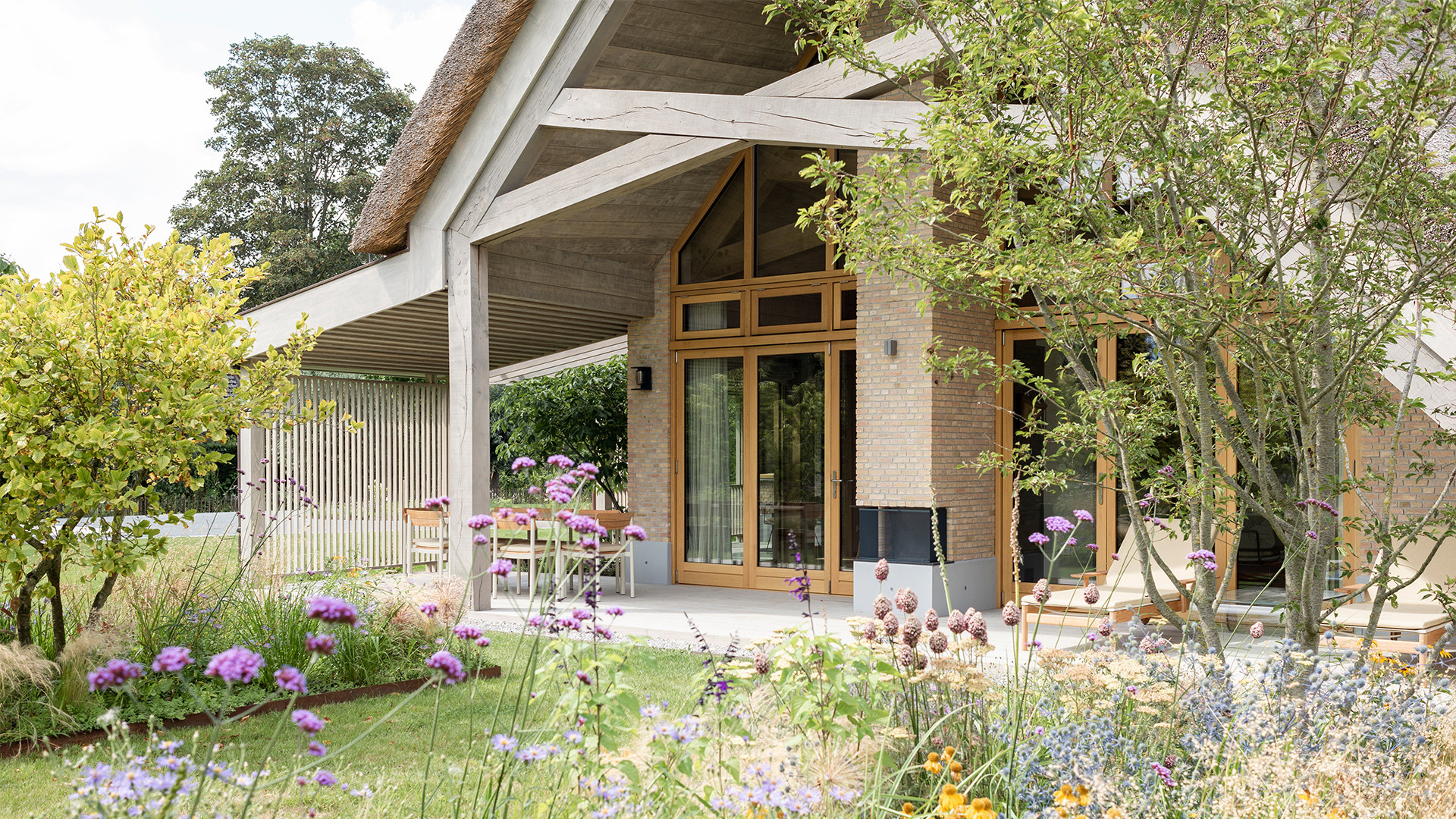Als architecten- en landschapsarchitectenbureau is ons doel om de interactie tussen architectuur en landschap te ontwerpen. Het Veldhuis is daar een duidelijk voorbeeld van, bestemd voor een echtpaar waarvan de kinderen al uit huis zijn. Het moest een warm familiehuis worden, dat behaaglijk aanvoelt voor zowel twee als twaalf personen. De indeling is levensloopbestendig ontworpen met oog voor flexibiliteit en toegankelijkheid: het is mogelijk om alleen op de begane grond te wonen, om het huis te splitsen en een aparte ‘studio’ te maken. Het is zelfs mogelijk om de gecombineerde percelen te scheiden en in de toekomst op het aangrenzende perceel te bouwen. Door toekomstige scenario’s te bespreken is het ontwerp zo levensloopbestendig mogelijk gemaakt.