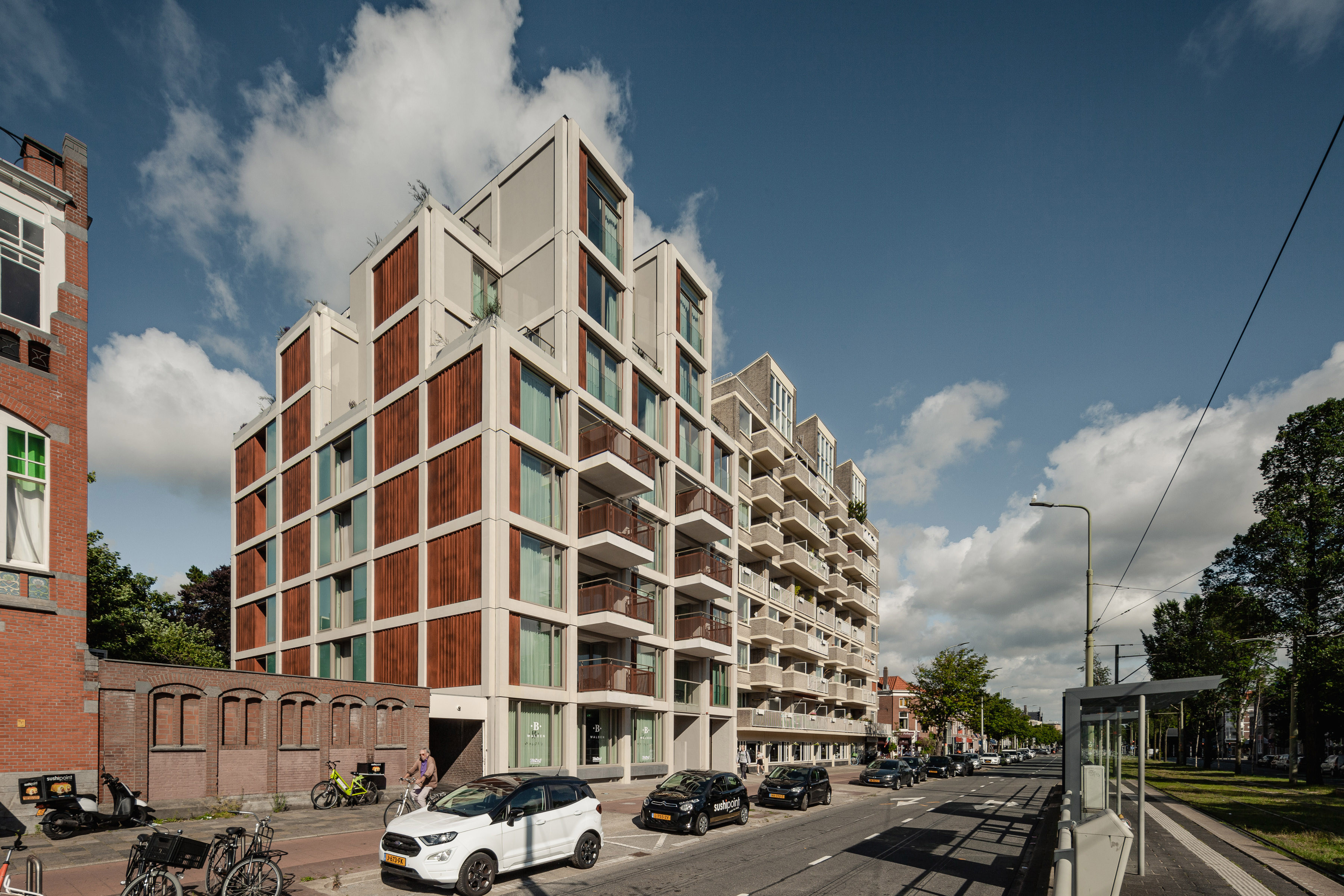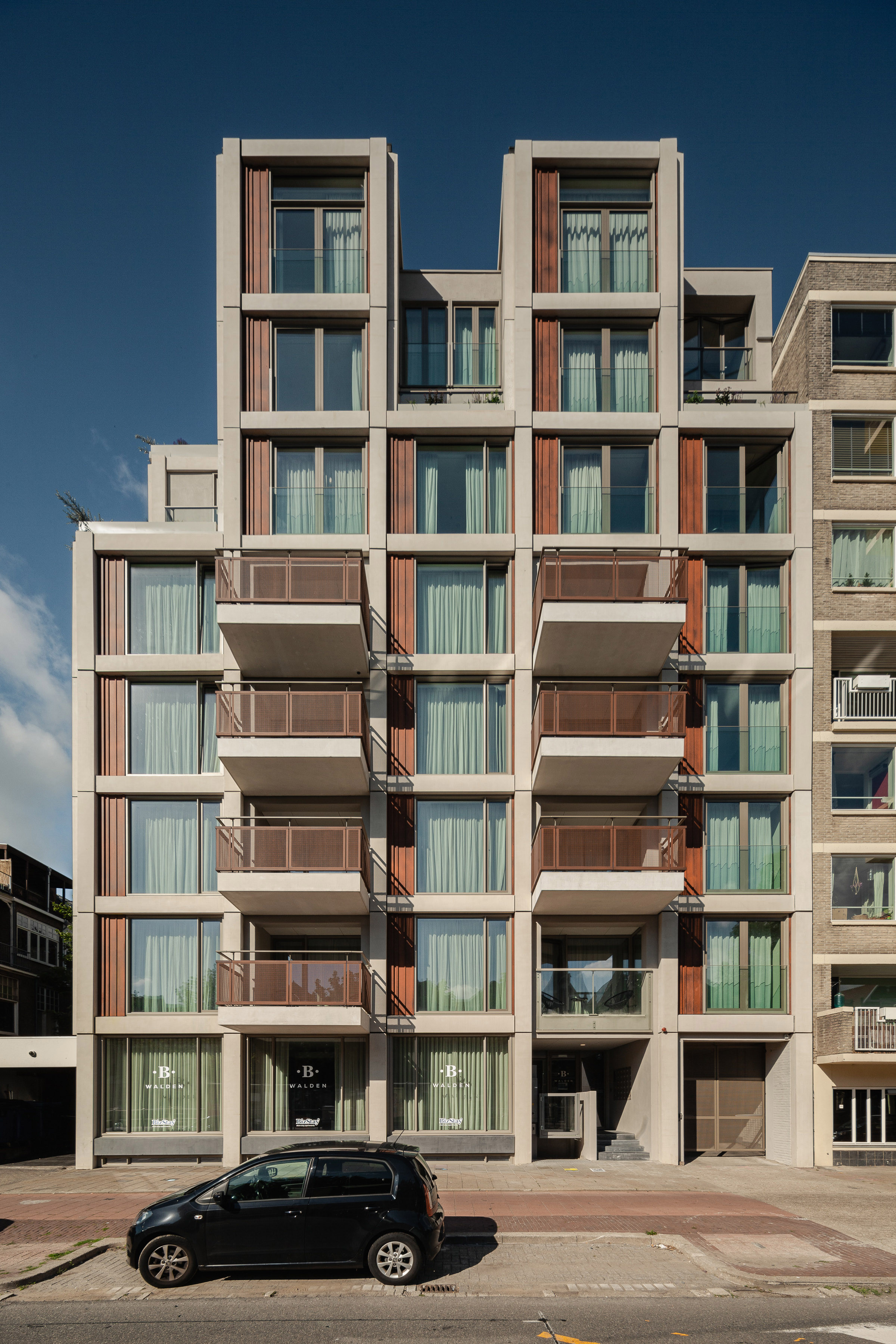 Walden is een kantoorpand getransformeerd tot een logies-gebouw met short-stay appartementen. Het is zowel een karakteristiek pand als een verbindende schakel binnen een zeer afwisselend straatbeeld. Daar het gebouw vaak overhoeks wordt gezien is de kenmerkende materialisatie en volumeopbouw rondom doorgezet.