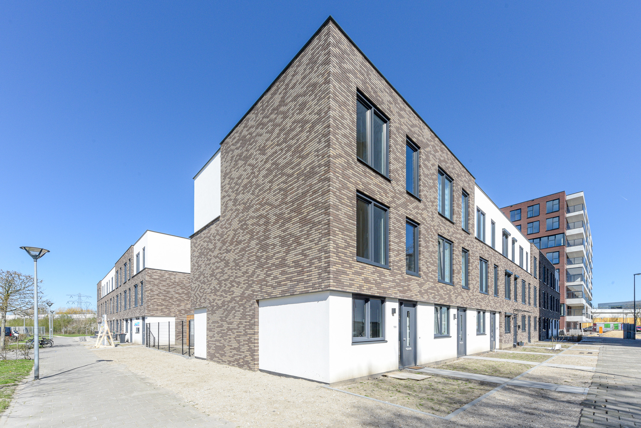 Qua materialen zorgen wij ervoor dat het metselwerk aansluit bij de steen die in de buurt wordt gebruikt. De overvloed aan glas zorgt voor een transparant karakter en is tegelijkertijd een eerbetoon aan de bestaande appartementsgebouwen. Door in de rijwoningen en appartementen kamerhoge ramen te verwerken, vervagen de grenzen tussen binnen- en buitenruimtes. Hierdoor wordt een ruimtelijke ervaring gecreëerd.