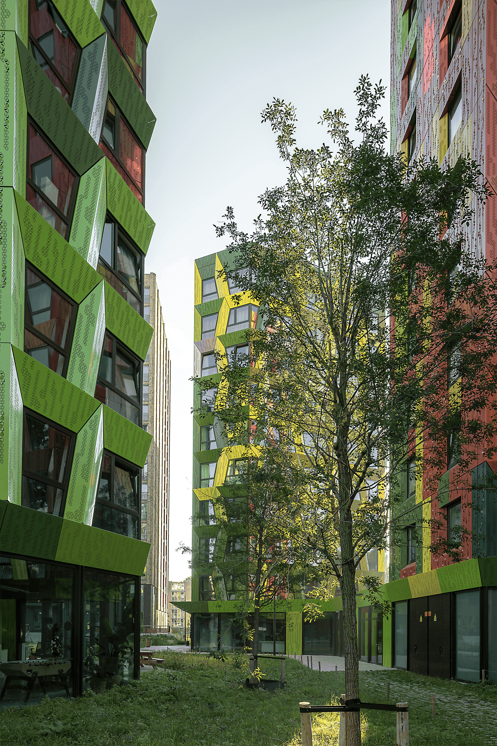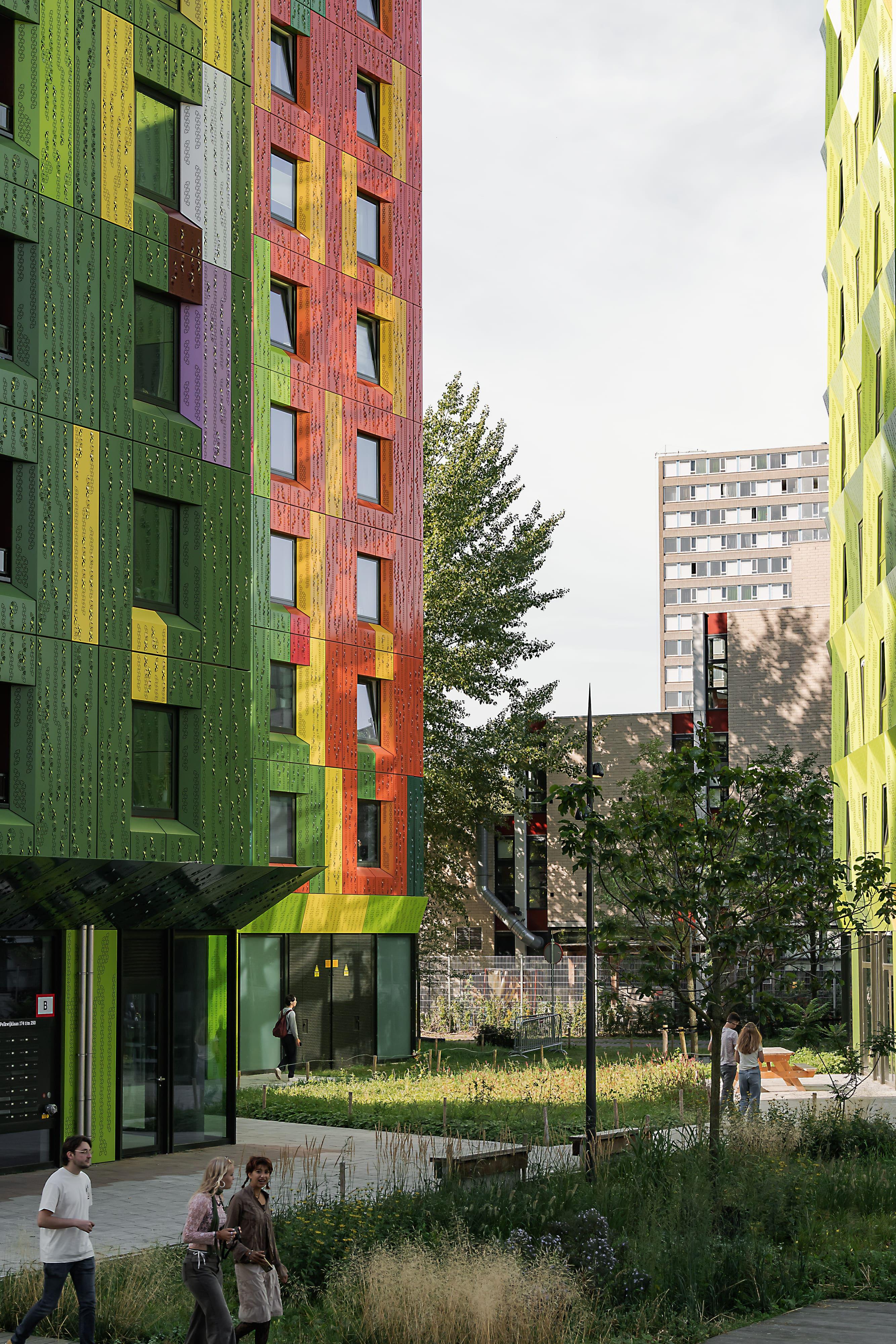 Het oorspronkelijke stedenbouwkundige plan was om meerdere massieve blokken te plaatsen. Ook bevond zich op het terrein het restant van een ondergrondse atoombunker, die men wilde verwijderen. Wij bedachten het plan van een Tiny Forest: zes kleurige, slanke woontorens die veel meer pasten binnen het campusidee. De bunker werd in dat plan gespaard en – ontdaan van het deksel - als vijver juist een centraal punt in het gebied.