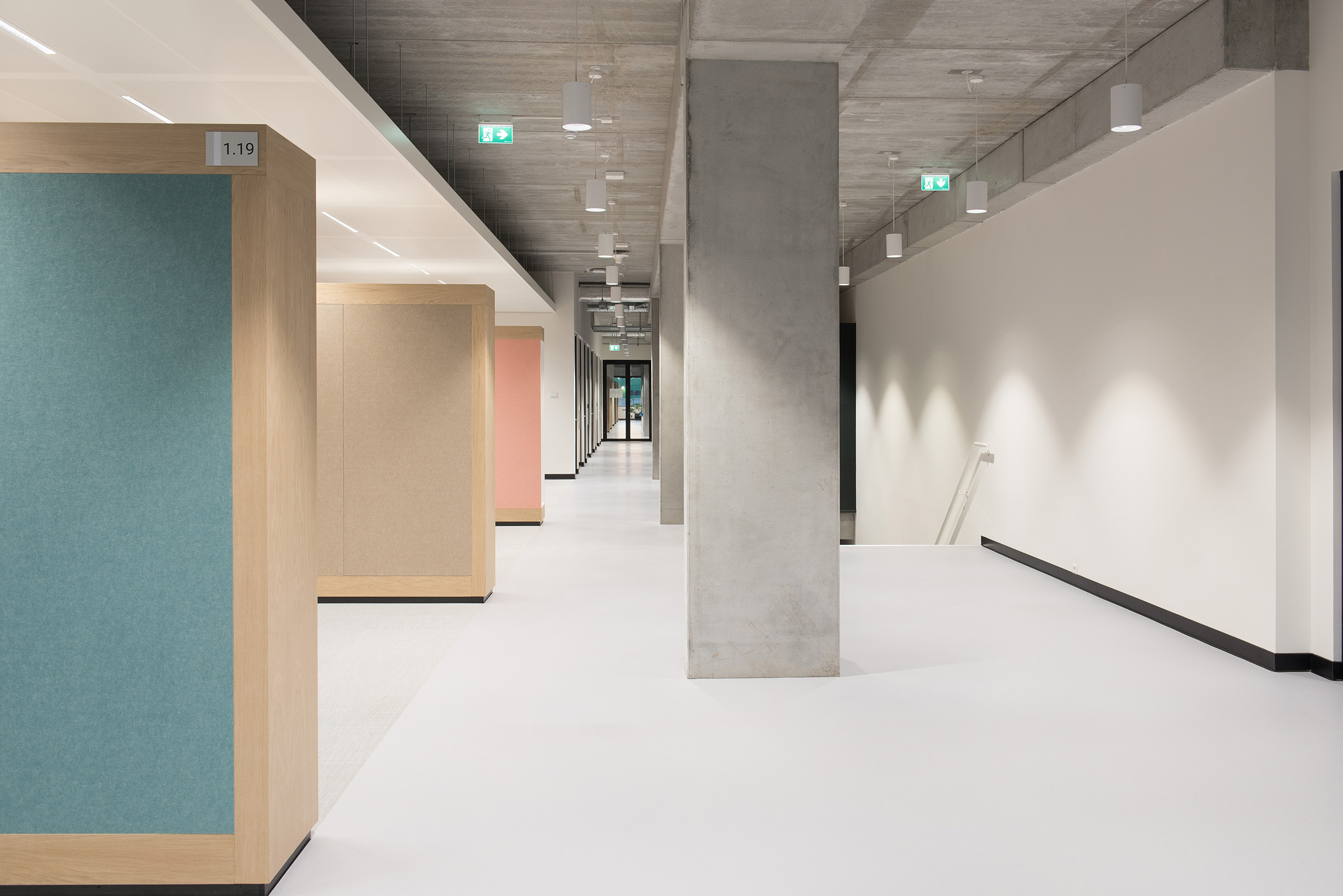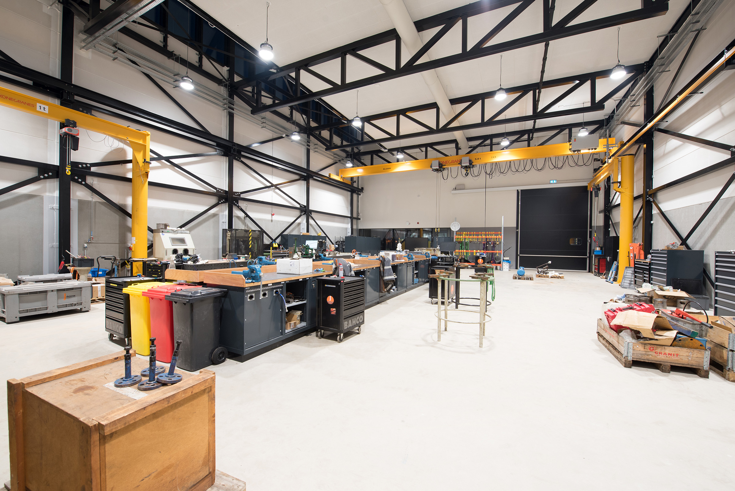 Er zijn meerdere aspecten die dit gebouw bijzonder en tot een stimulerende omgeving maken, van de aandacht die besteed is aan het welzijn van medewerkers tot de technische veiligheidsvoorzieningen. In dit gebouw zijn zowel kantoren, werkplaatsen als het magazijn ondergebracht. Het feit dat alle medewerkers letterlijk onder één dak werken, versterkt de samenwerking tussen de afdelingen en bevordert de werkprestaties aanzienlijk ten opzichte van de oude situatie toen alle werknemers verspreid over meerdere gebouwen zaten. Het samenbrengen van werknemers en functiegroepen in één veilig gebouw was dan ook de start van het ontwerptraject. Door het gebouw heen lopen lange verbindingsgangen die het kantoorpersoneel verbinden met hun collega’s van de werkplaatsen en het magazijn. Van meet af aan stond vast dat de opdrachtgever beslist geen ‘grijze doos’ wilde laten bouwen, maar een architecturaal hoogstaand gebouw dat de samenwerking tussen, en binnen afdelingen bevordert en dat tegelijkertijd bestand is tegen alle calamiteiten die in het drukste havengebied van Europa kunnen optreden. Belangrijke aspecten zijn het creëren van een betere (loop-)verbinding en contact tussen de functies en medewerkers, het minimaliseren van logistieke vrachtbewegingen op het terrein en het maximaliseren van overzicht en veiligheid. Het centrale atrium, waar alle medewerkers samen kunnen komen, is visueel uitnodigend door het overzicht en een prettige ruimte door het ruim invallend daglicht. Hier kan iedereen samenkomen tijdens reguliere werkdagen voor meetings, koffiepauzes en de lunch, maar de ruimte is dusdanig ingericht dat deze ook gebruikt kan worden voor grote informatiesessies of speciale aangelegenheden. Er is in dit gebouw speciale aandacht besteed aan alle aspecten van veiligheid. Het meest in het oog springende aspect is echter de stalen constructie die ervoor zorgt dat het gebouw zware drukgolven kan weerstaan. De constructie is dusdanig ontworpen dat het personeel in het gebouw veilig naar buiten kan komen, wanneer er sprake zou zijn van een drukgolf in de omgeving. Daarnaast zijn twee van de drie werkplaatsen ingericht als Shelter in Place (SIP) ruimtes, dit zijn ruimtes die tijdens een calamiteit luchtdicht afgesloten kunnen worden en waarin het personeel 2 uur veilig kan verblijven. Deze ruimtes zijn geheel luchtdicht uitgevoerd met speciale deuren uit de voedselindustrie. Voor de veiligheidsvoorzieningen zijn aparte specificaties opgenomen in het Programma van Eisen