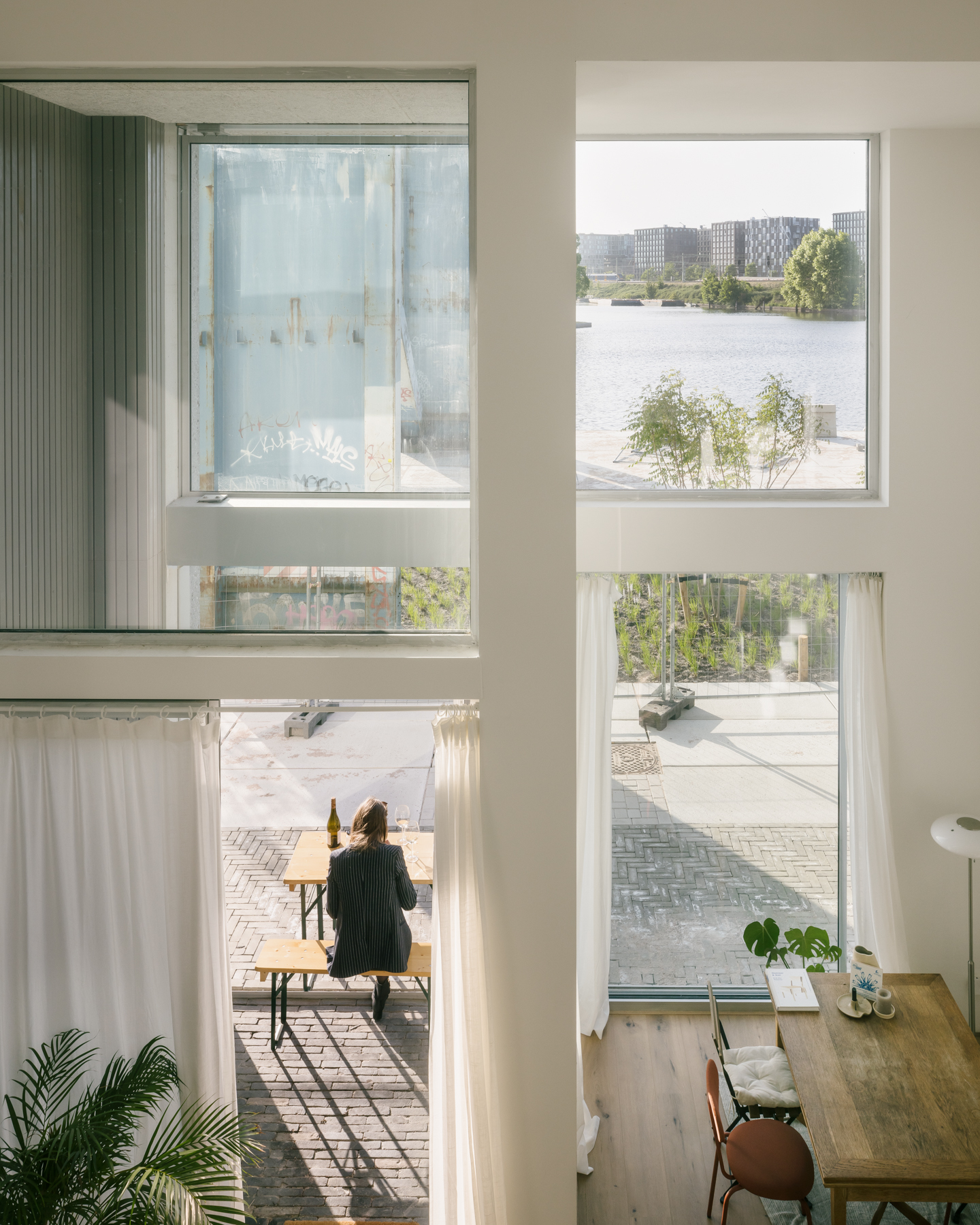 Oostenburg is een van de laatste grootschalige gebiedsontwikkelingen in het centrum van Amsterdam. Het gebied kent een rijke industriële geschiedenis die terug te voeren is tot de zeventiende-eeuwse VOC. In een hoge stedenbouwkundige dichtheid heeft BETA een woontoren ontworpen die de gelaagde historie van het gebied verbindt met hedendaagse architectuur. Bijzonder aan het gebouw is hoe bewoners worden uitgenodigd om de trap te nemen en elkaar te ontmoeten. De Draaier ligt daarmee in het directe verlengde van ‘Beweeglogica in Gebouwen’ - een onderzoek van BETA naar beweegvriendelijke architectuur.