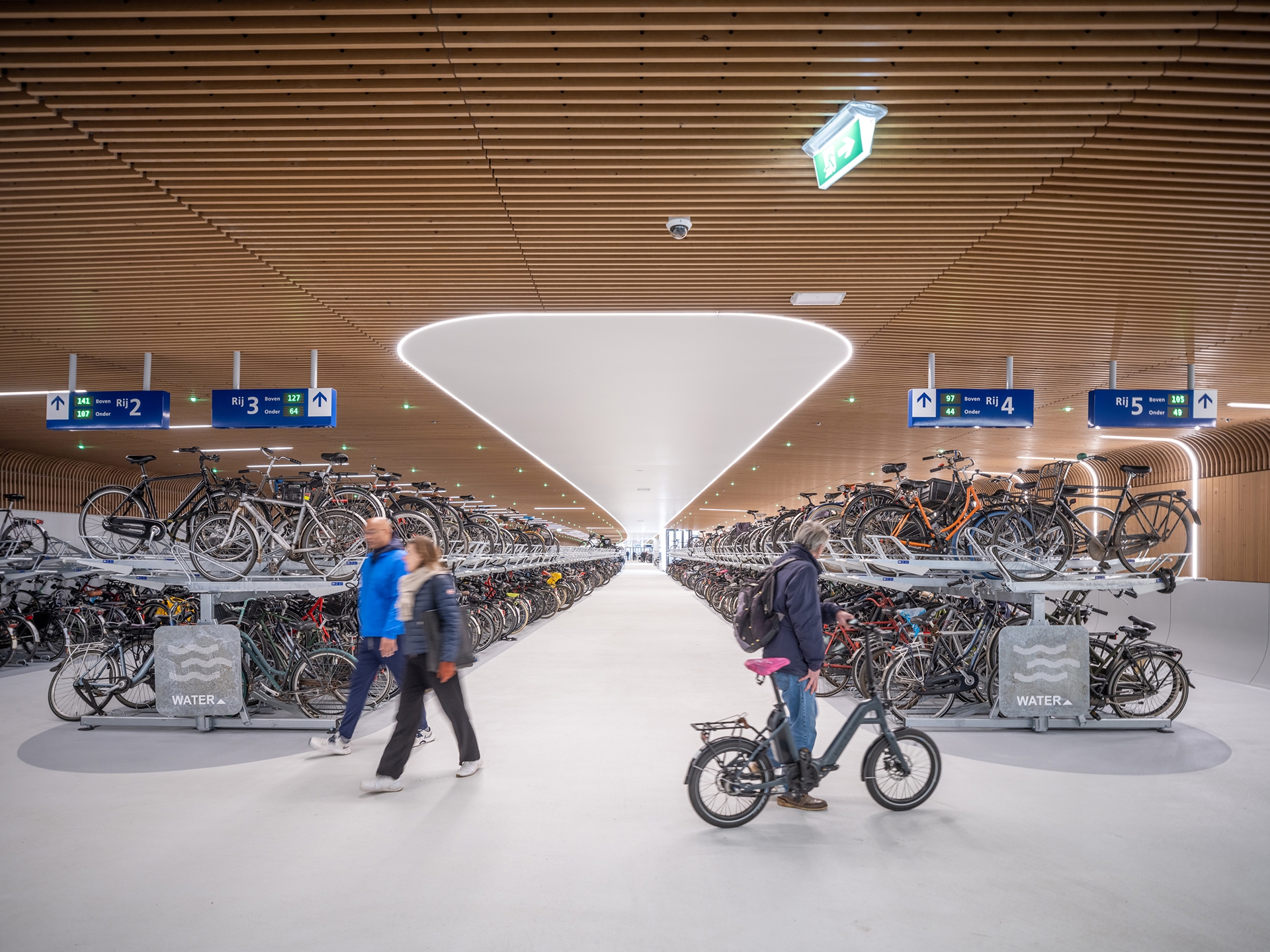 In het ontwerp van IJboulevard staan de reizigers en de beheerder van de stalling centraal: de bewegingen van de fietsers en de voetgangers, evenals het zicht vanuit de beheerdersruimte, bepalen samen het ontwerp van de stalling.