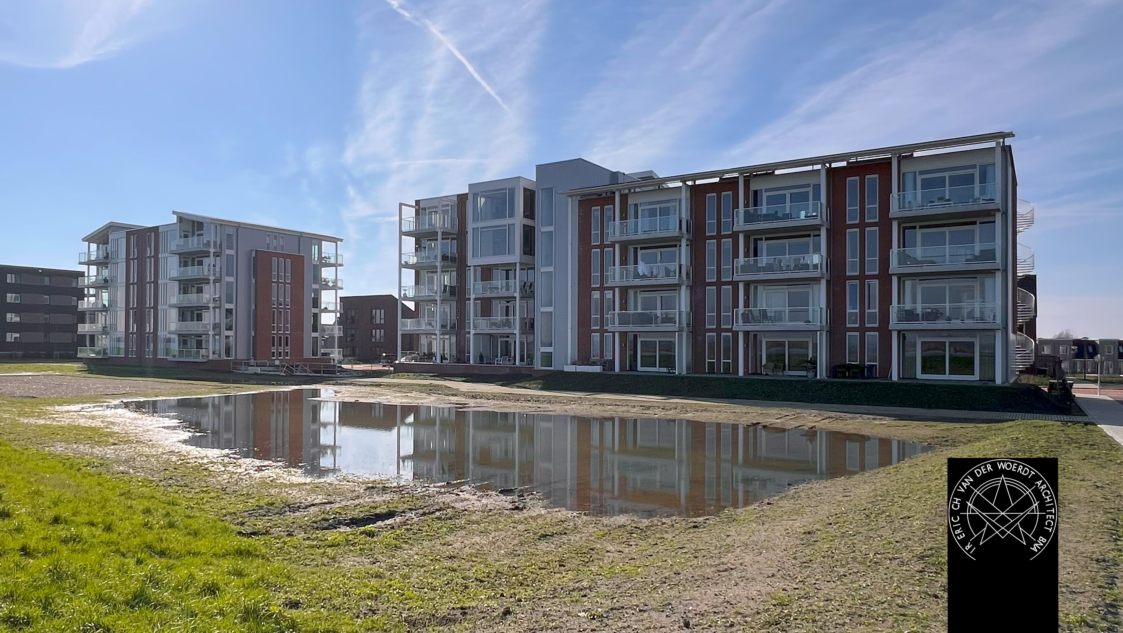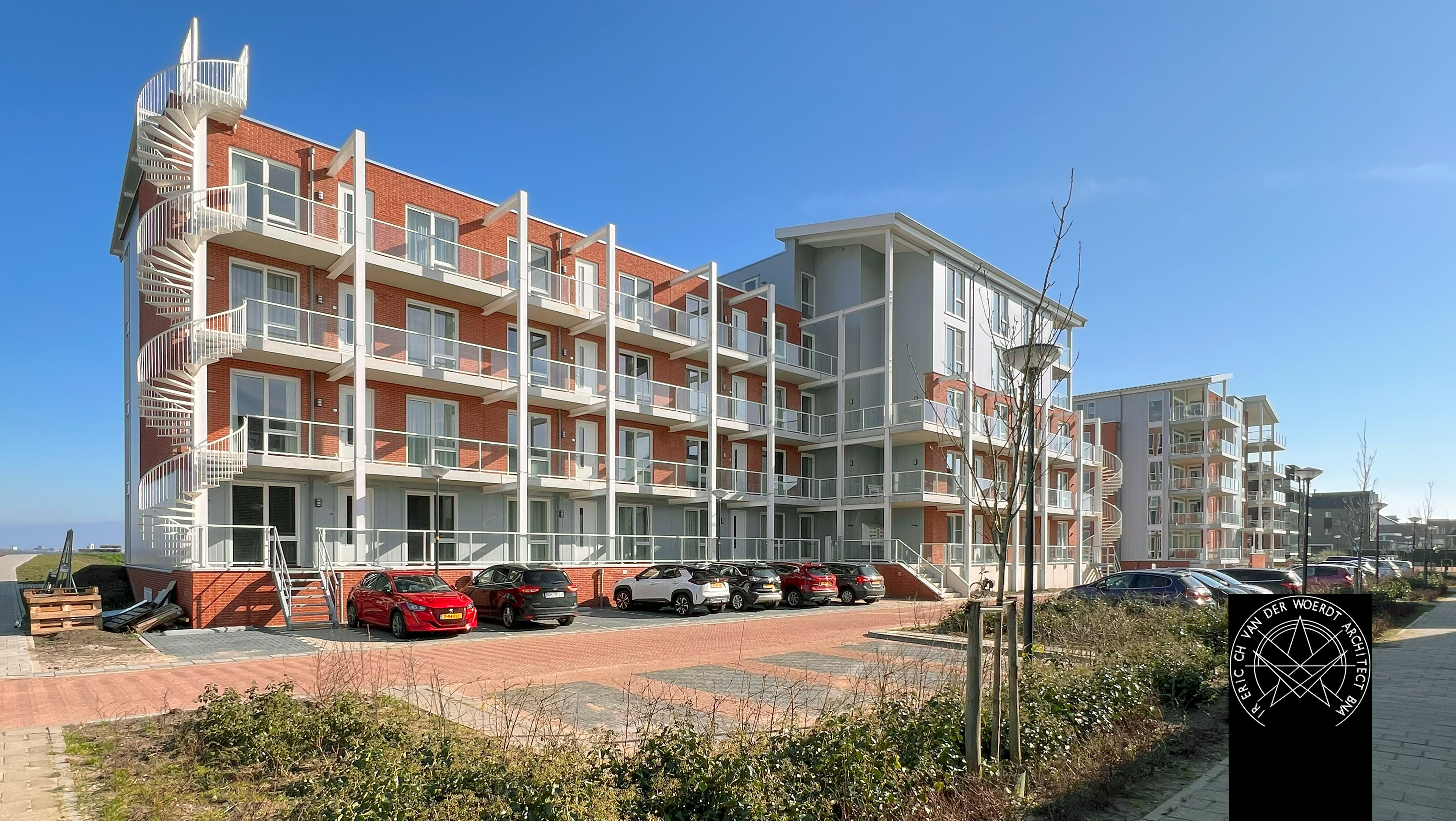 ‘Zeewolde aan Zee’ is de werktitel van project Appartementen Kaapsduin geweest. De inspiratie wordt hiermee wellicht gelijk duidelijk: De Hollandse kustlijn, Noordwijk aan Zee, Huis ter Duin, de, de oude villa’s. Het wisselende ensemble nu geprojecteerd langs de dijk van Zuidelijk Flevoland aan het Wolderwijd.