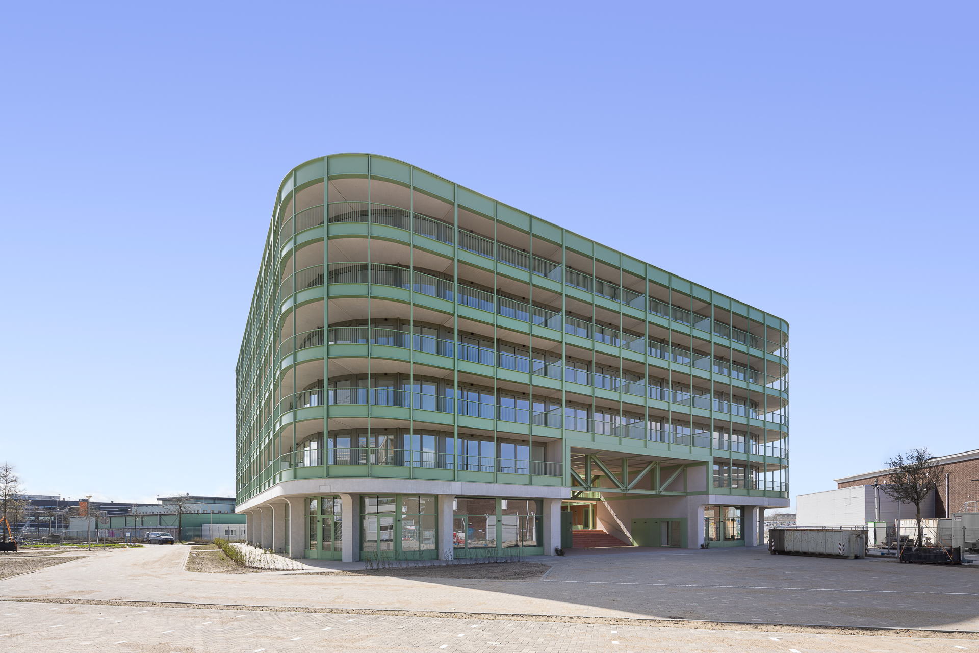 In het hart van de Cartesiusdriehoek prijkt het frisgroene Solo, een ontwerp van Zecc Architecten. Een eigentijds industrieel gebouw met 80 huurappartementen, ronde vormen en riante doorlopende buitenruimten. De appartementen omringen een groene binnenplaats met ontmoetingsruimte. Solo markeert het begin van een nieuwe stadswijk met 2.800 woningen.