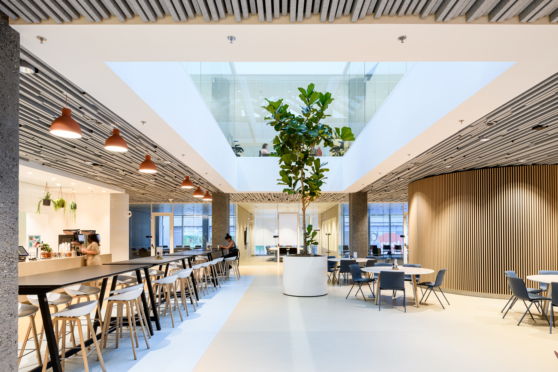 Met de nieuwe Stadswinkel van Tilburg is een centrale plek ontstaan waar inwoners en bedrijven, in een informele setting, terecht kunnen bij de gemeente en een aantal van haar sociale partners. De transformatie is volledig circulair uitgevoerd en een van de eerste bio-based en circulair getransformeerde kantoren in Nederland.