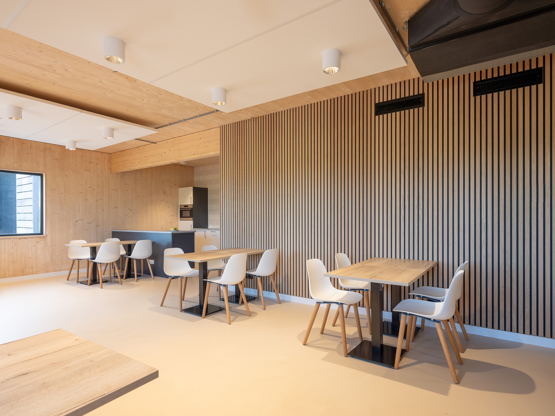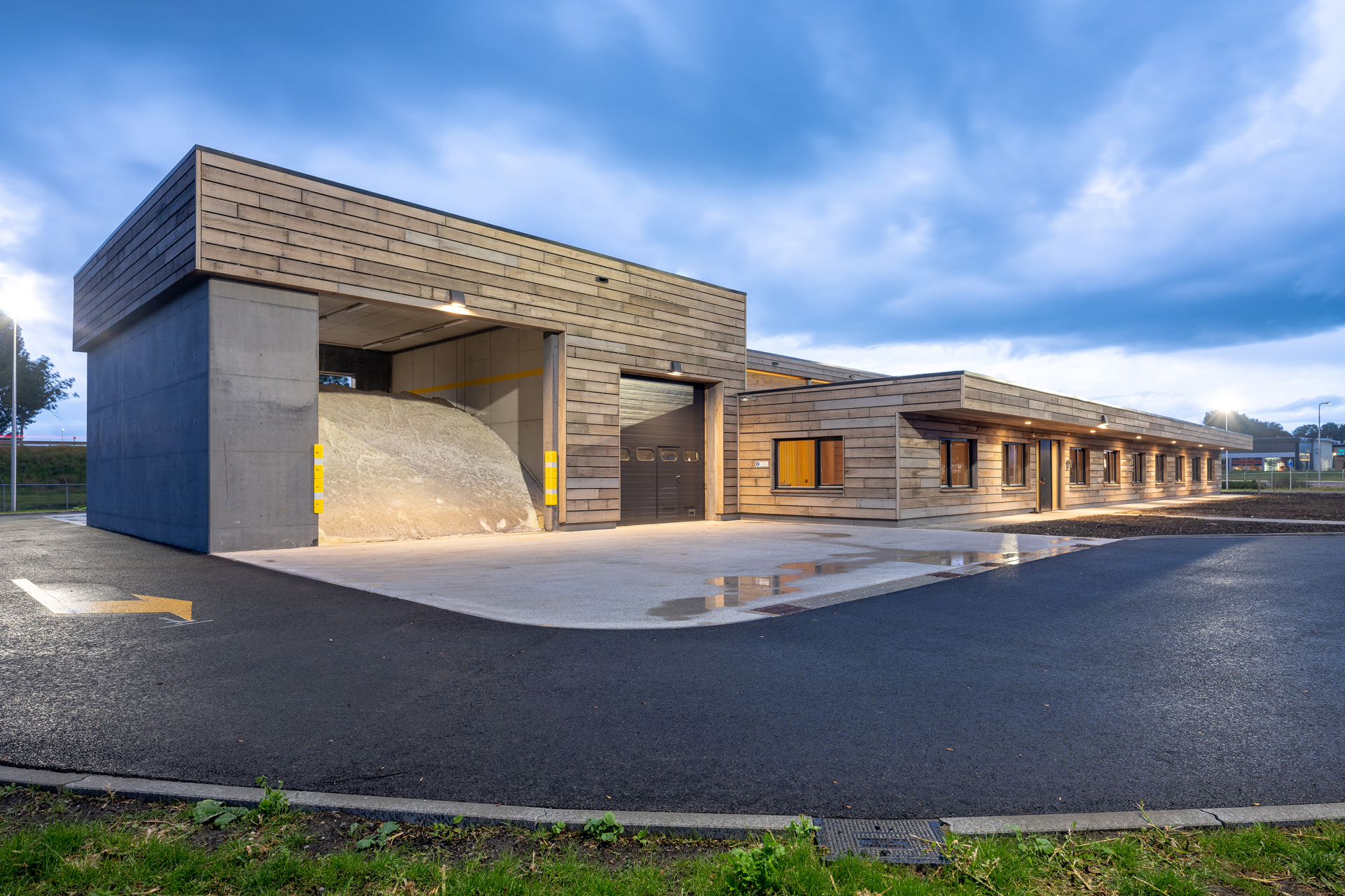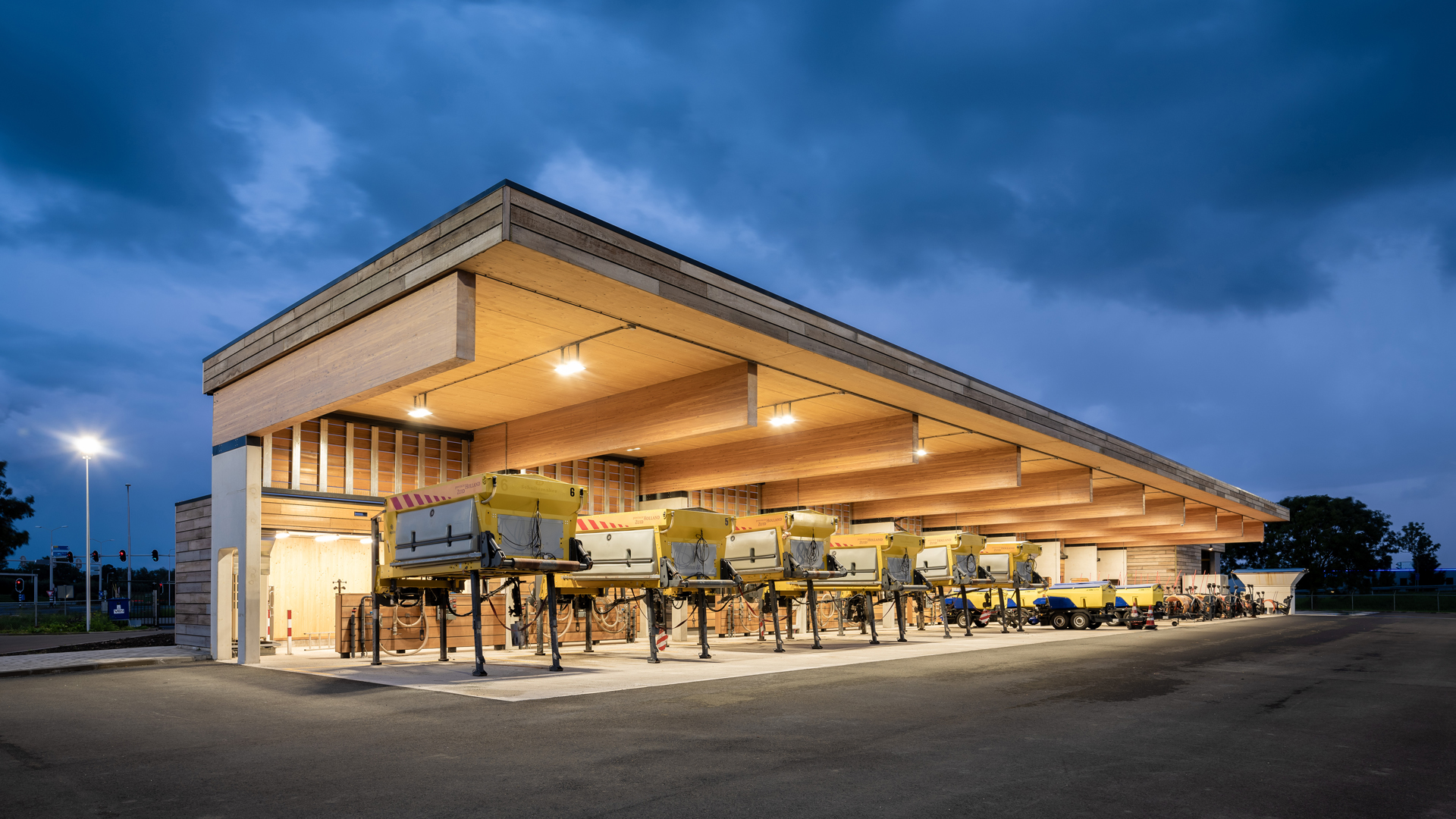 Het uit hout opgebouwde kantoor biedt de binnendienst een aangename werkomgeving. Tijdens de 24-uursopening kan het kantoorgedeelte worden afgesloten en blijven de kantine en het sanitair toegankelijk voor de buitendienst. Een van de wensen van de gebruikers. Aan het begin van het ontwerpproces zijn alle wensen bij de medewerkers opgehaald en vervolgens verwerkt in het project.