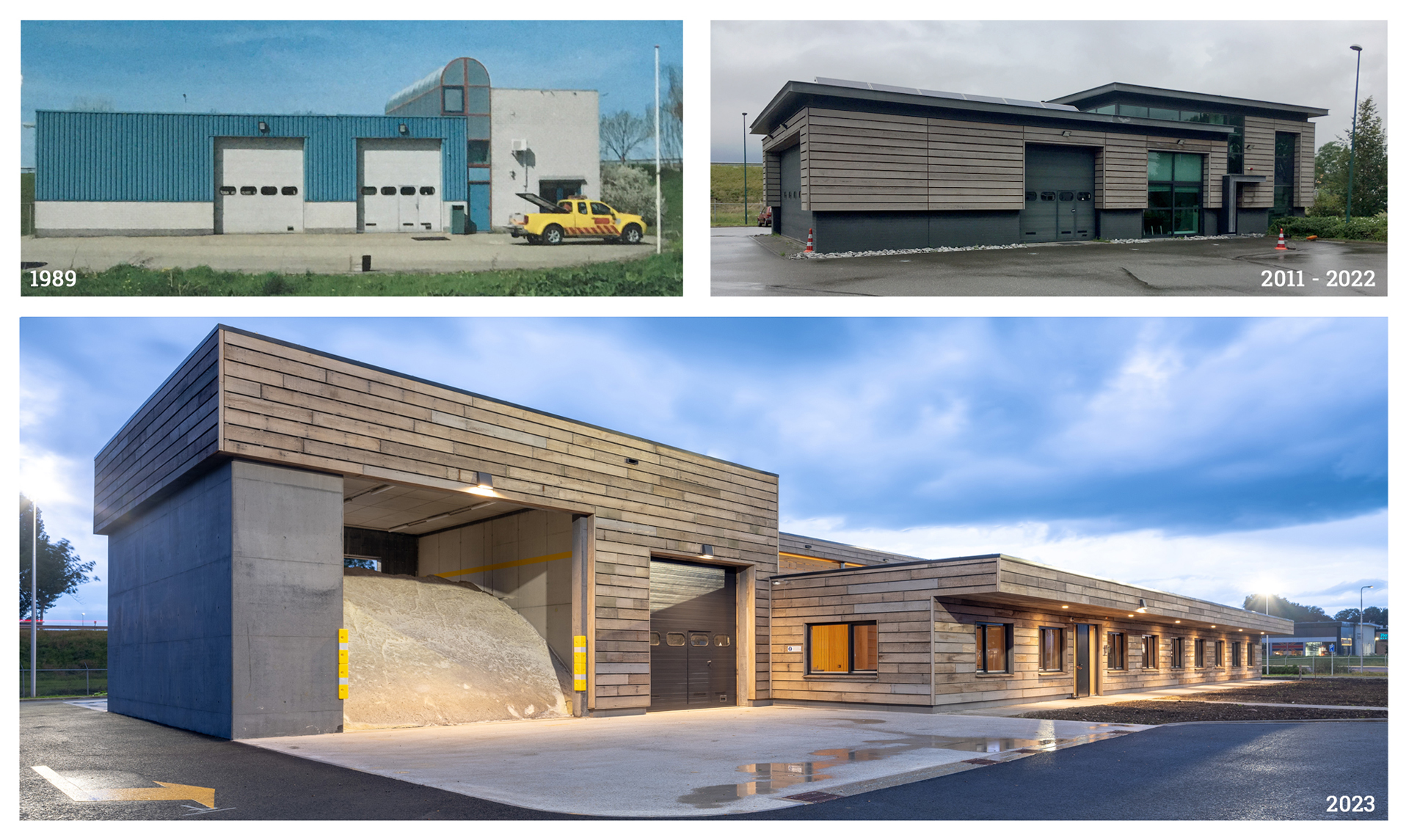 Het steunpunt dat op deze locatie stond, was al deels gerealiseerd op basis van het steunpunt dat hier in de jaren 80 werd gebouwd. Het bestaande gebouw werd door aannemer Van der Ven gedemonteerd en opgeslagen, zodat het kon worden hergebruikt in het nieuwe Steunpunt Coenecoop. Zo kregen bouwonderdelen een tweede of derde leven! Het gaat daarbij om de gehele houten gevel, overheaddeuren, zonnepanelen, kozijnen, deuren, de keuken, sanitair en de volledige zoutinstallatie.