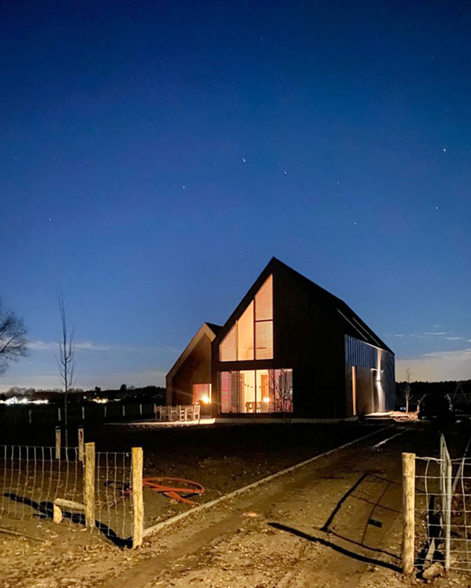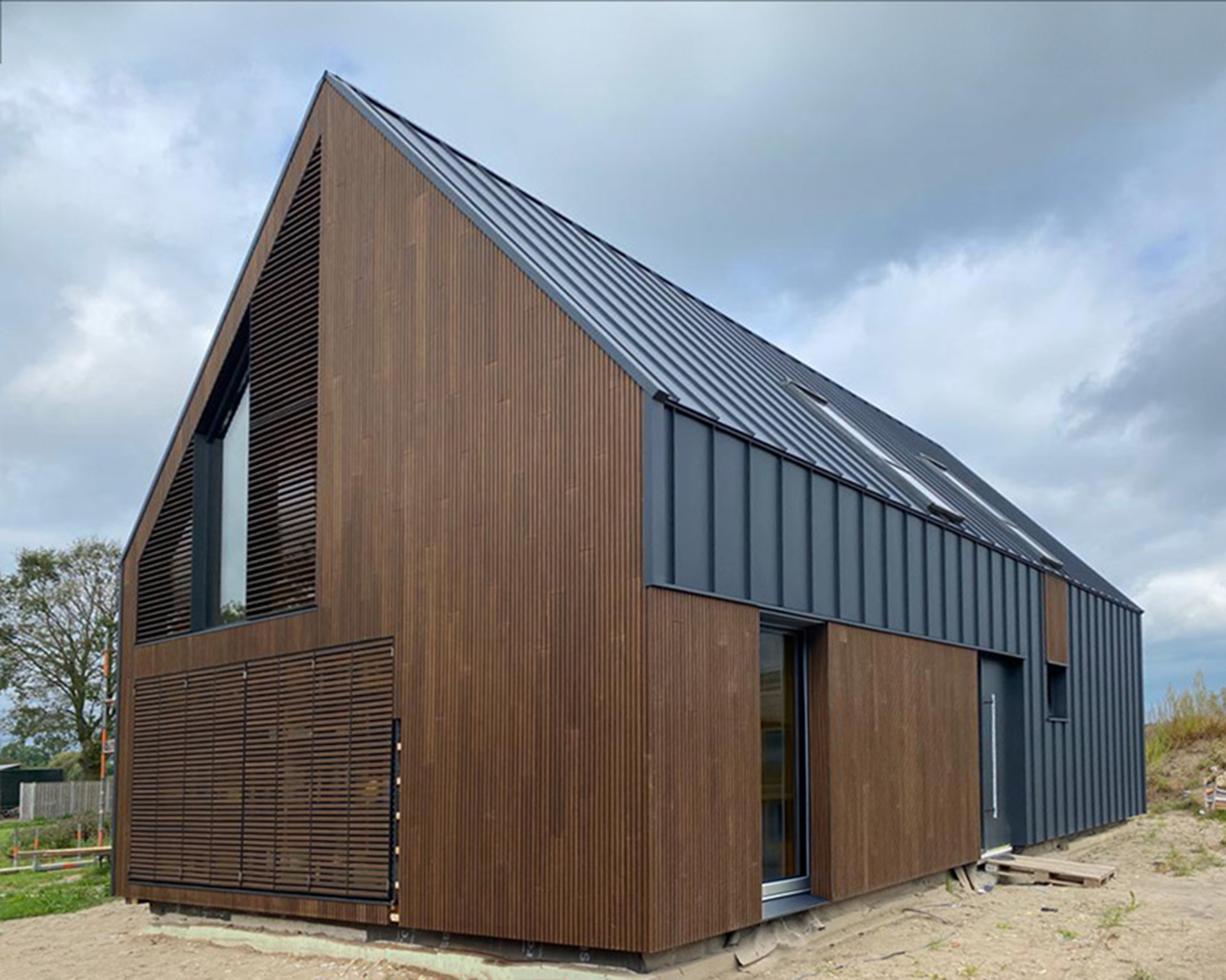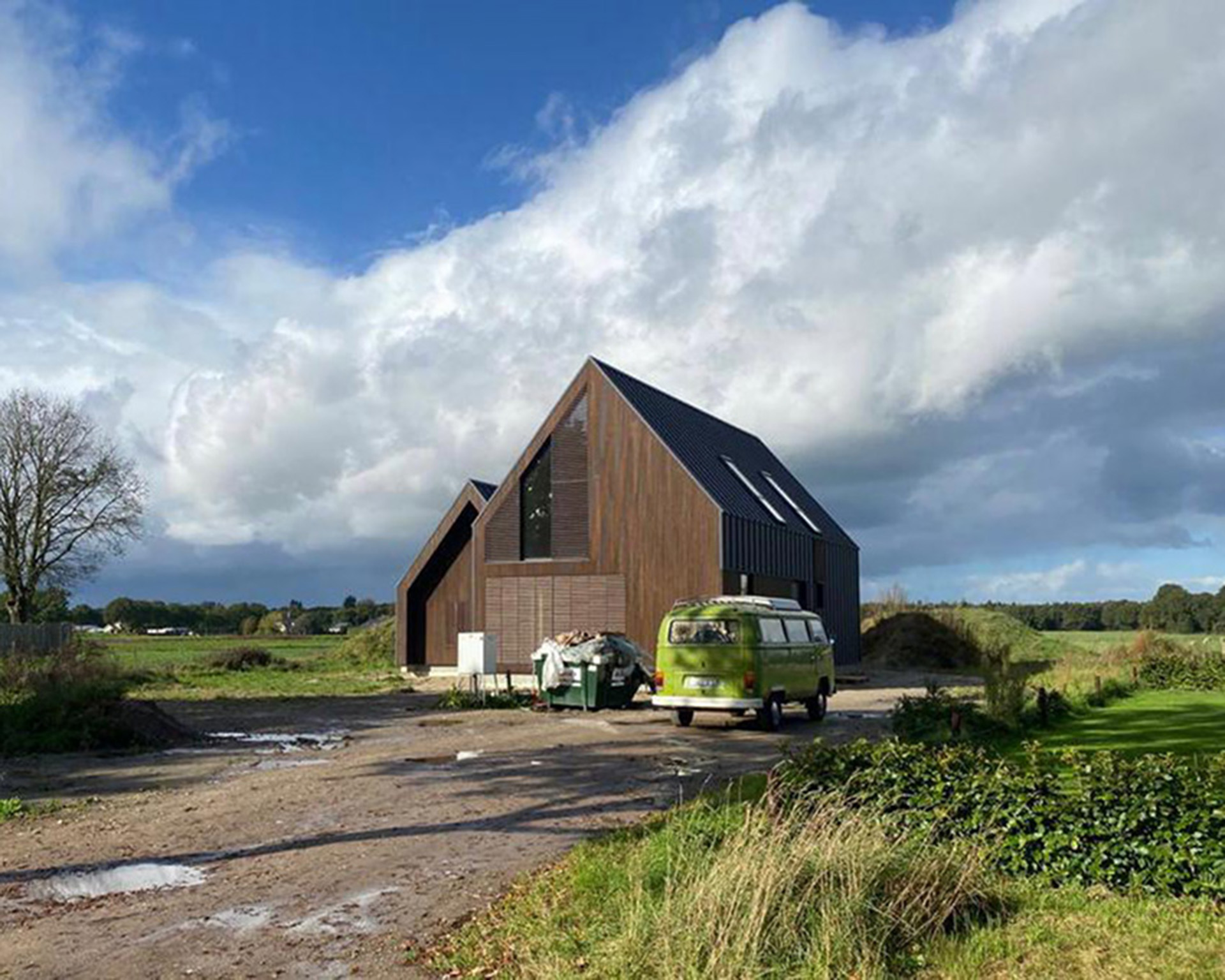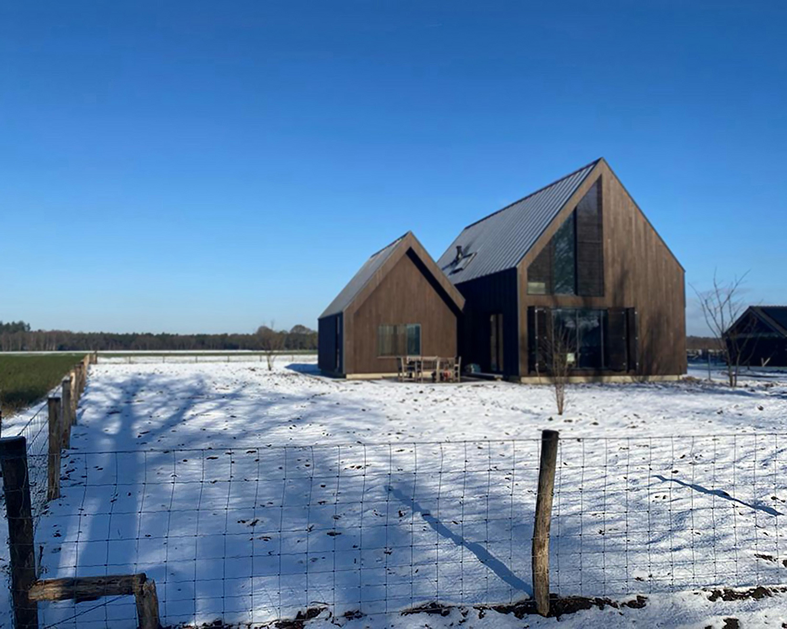 De opdrachtgevers Arjan en Janna wilden een huis van kruislaaghout, nadat zij in Oostenrijk gelogeerd hadden in een mooie woning die daar van gemaakt was. De sfeer er van, maar ook de perfectie en maatvastheid waarmee je dan kon bouwen sprak hen erg aan. Een hoge mate van perfectionisme is in het hele ontwerp- en bouwproces nagestreefd. Niet per se omdat dat altijd makkelijker of altijd gezellig was in het ontwerp- en bouwproces, maar het resultaat is subliem doordat de opdrachtgevers ons over elk detail meerdere keren lieten nadenken en verbeteren. De chocolaatjes en goede koffie hielpen er bij. Het is een levenswerk geworden.