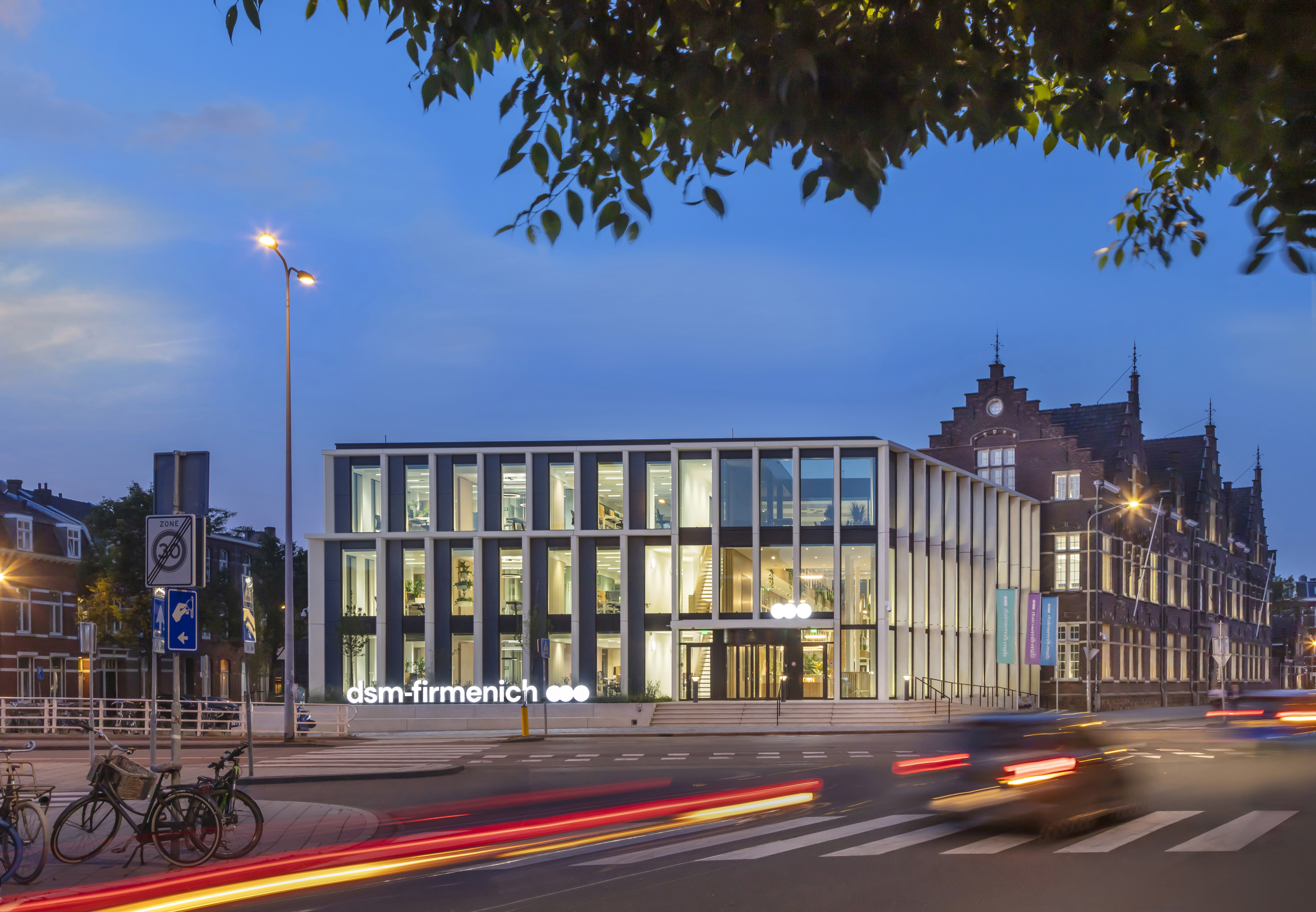 De nieuwe thuisbasis van dsm-firmenich ligt in het centrum van Maastricht, in de bruisende wijk Wyck. Het combineert meerdere gebouwdelen tot een nieuw ensemble. De Oude Ambachtsschool, de drielaagse nieuwbouw gebouwd op een bestaande parkeergarage vormen samen met het nieuwe atrium in het hart van het gebouw het nieuwe clubhuis voor de organisatie