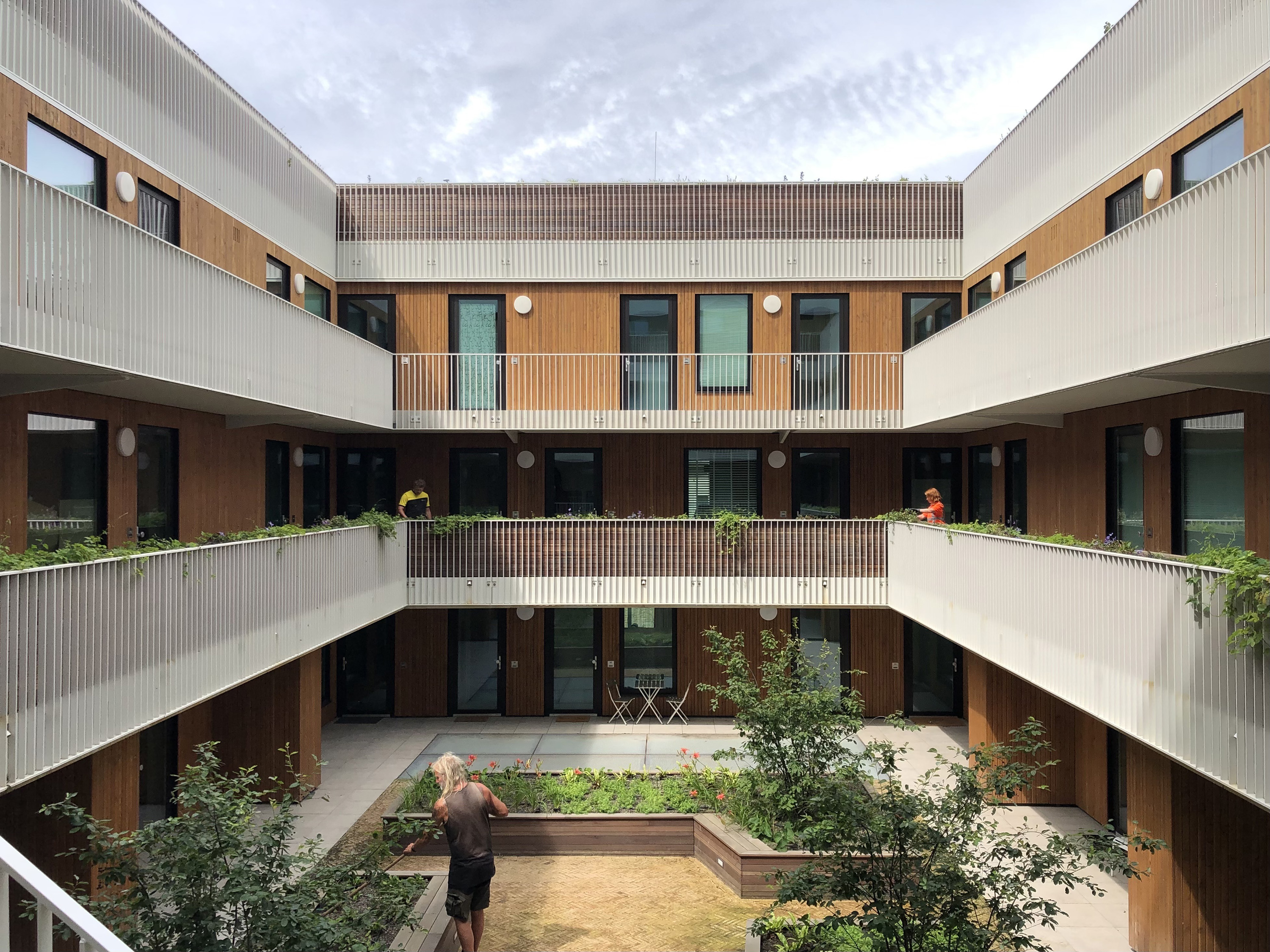 Floating Gardens is een integraal vormgegeven gebouw, met een ‘alles-in-één-school’, 192 appartementen en een grote collectieve huiskamer over drie verdiepingen. Het gebouw is opgebouwd uit lagen van verschillende grootte, om drie groene daktuinen aan te kunnen leggen. Hiermee wordt de biodiversiteit vergroot en het welzijn van bewoners verbeterd.