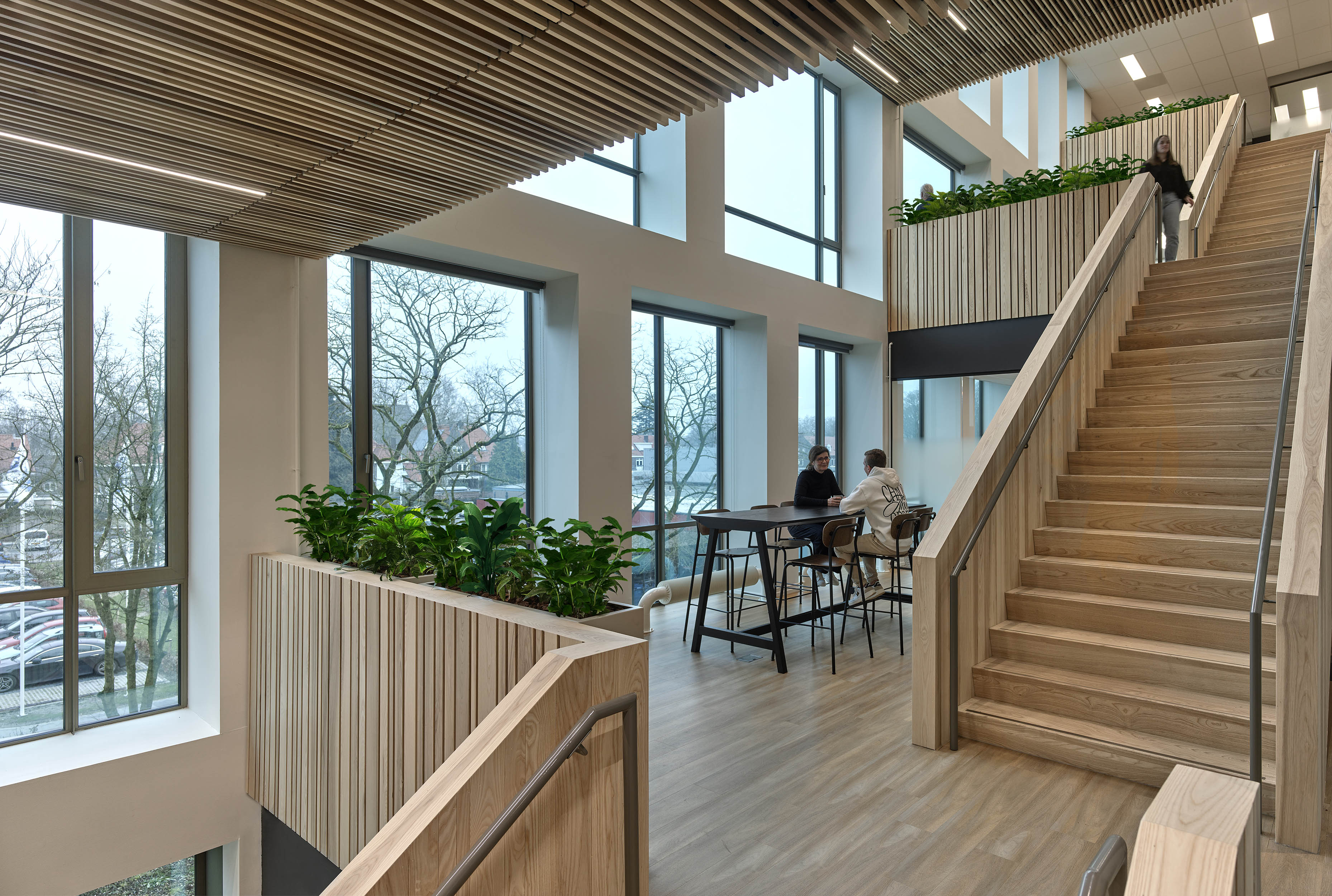 Architectenbureau De Twee Snoeken heeft het ontwerp gemaakt voor de nieuwe huisvesting voor GGD Gelderland-Zuid in Nijmegen. De nieuwbouw biedt een veilige en beschermende omgeving voor de veelal kwetsbare bezoekers, met een doordachte combinatie van architectuur en interieur die rust en geborgenheid uitstraalt.