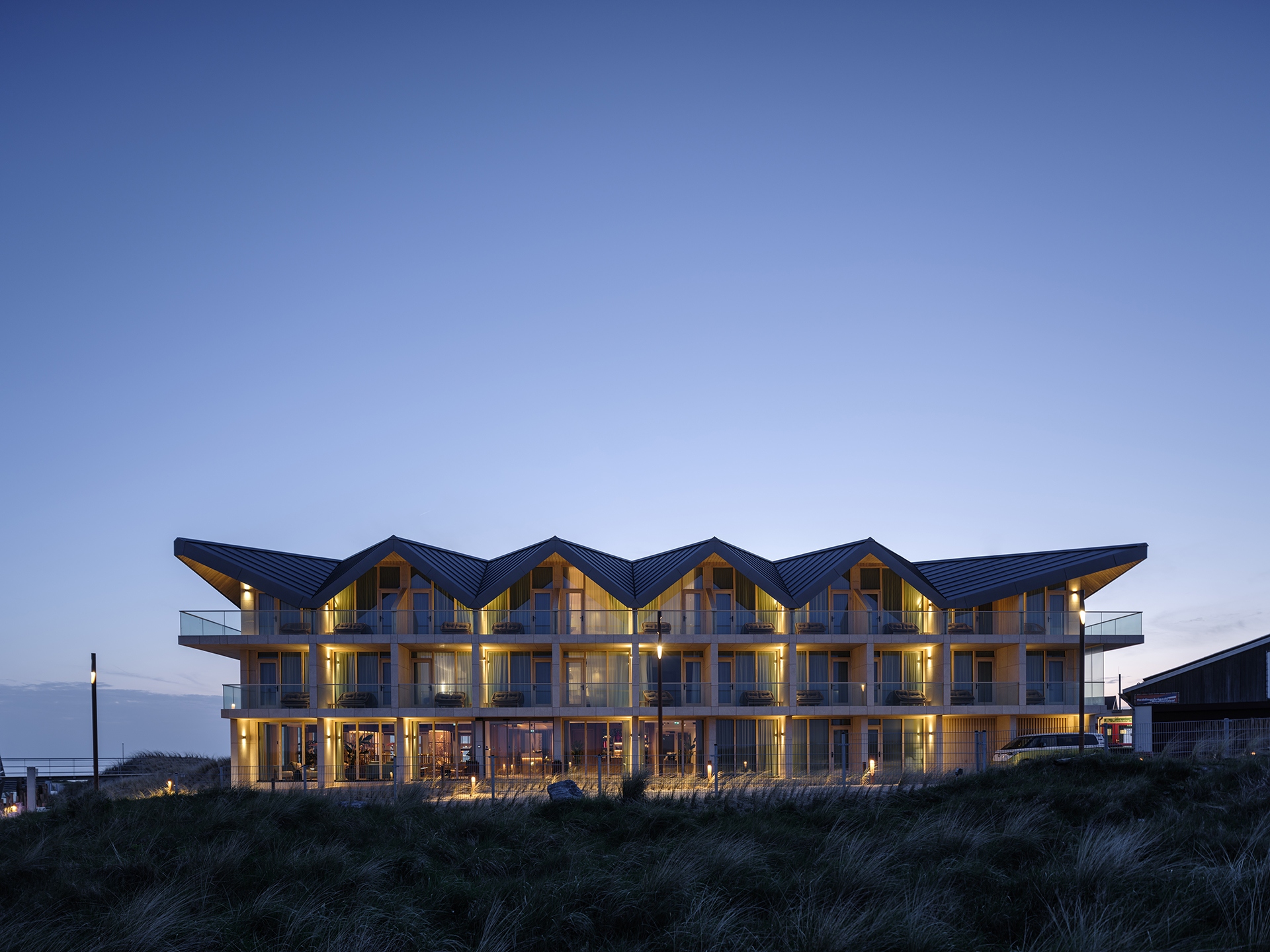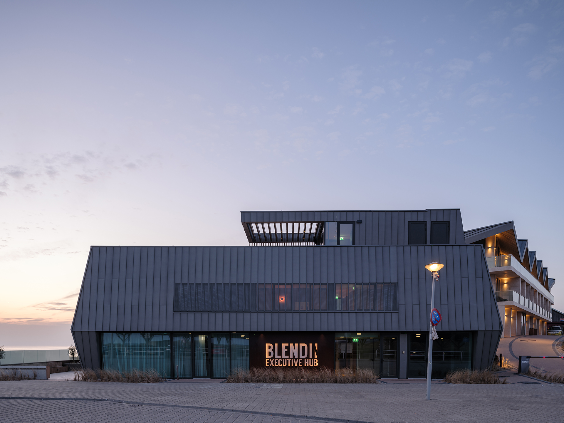 Hotel Blendin en de bijbehorende executive hub maken deel uit van de transformatie van de boulevard van Bloemendaal aan Zee. De gebouwen liggen op de kop van de boulevard en vormen als ensemble een markant herkenningspunt. Door de materiaalkeuze en het ingetogen kleurenpalet passen ze als vanzelfsprekend in het fraaie duinlandschap.