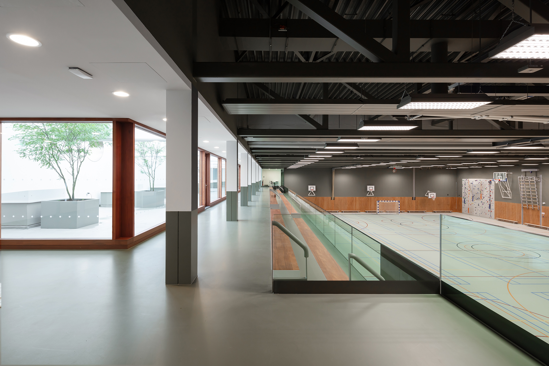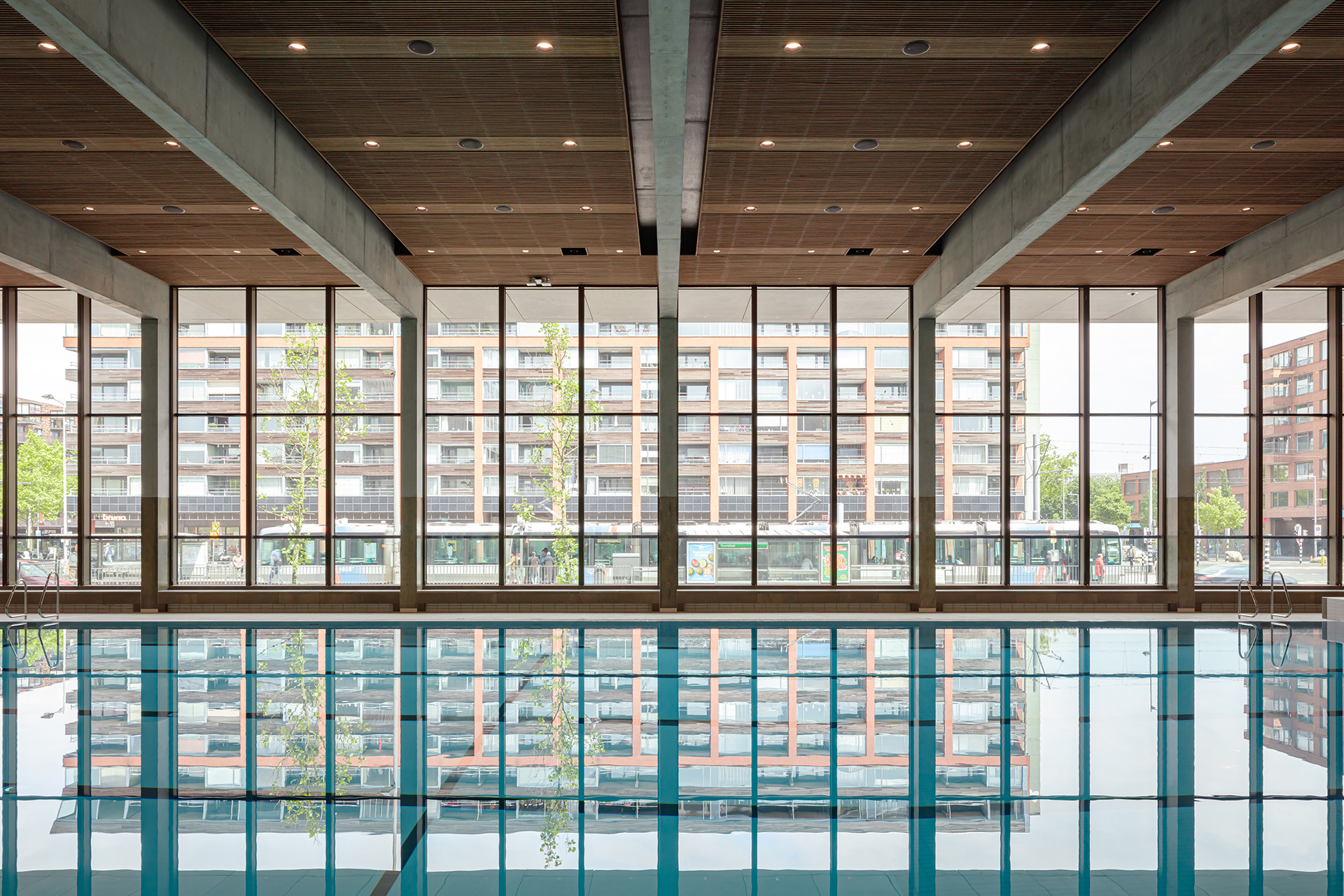 Binnen Huis op Zuid is een breed scala aan functies samengebracht in één krachtig totaalbeeld. Het veelzijdige gebouw bevat twee zwembaden, drie sporthallen met publieke tribune, café en kantoren, winkelruimtes, inpandige (publieke) fietsenstallingen, een kookstudio en 104 woningen. De bundeling van functies in Huis op Zuid zorgt voor een meerwaarde in gebruik, beleving, identiteit en sociale veiligheid.