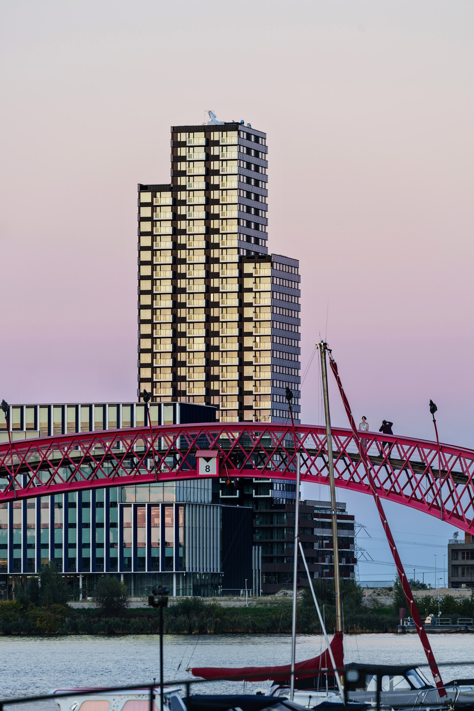 Justus, de eerste woontoren in de Sluisbuurt op Zeeburgereiland, is meer dan alleen een gebouw – het is een icoon dat de identiteit van de nieuwe wijk vormgeeft. Met een hoogte van 100 meter en 33 verdiepingen domineert Justus niet alleen de skyline, maar geeft het ook richting aan de stedenbouwkundige visie van de Sluisbuurt. Het ontwerp van de Architekten Cie. combineert robuuste elegantie met aandacht voor detail, waardoor Justus zich onderscheidt van traditionele hoogbouw. De horizontale banden in de oost- en westgevel, die overgaan in balkons, en de verticale geleding aan de noord- en zuidgevel zorgen voor een dynamische en herkenbare uitstraling.