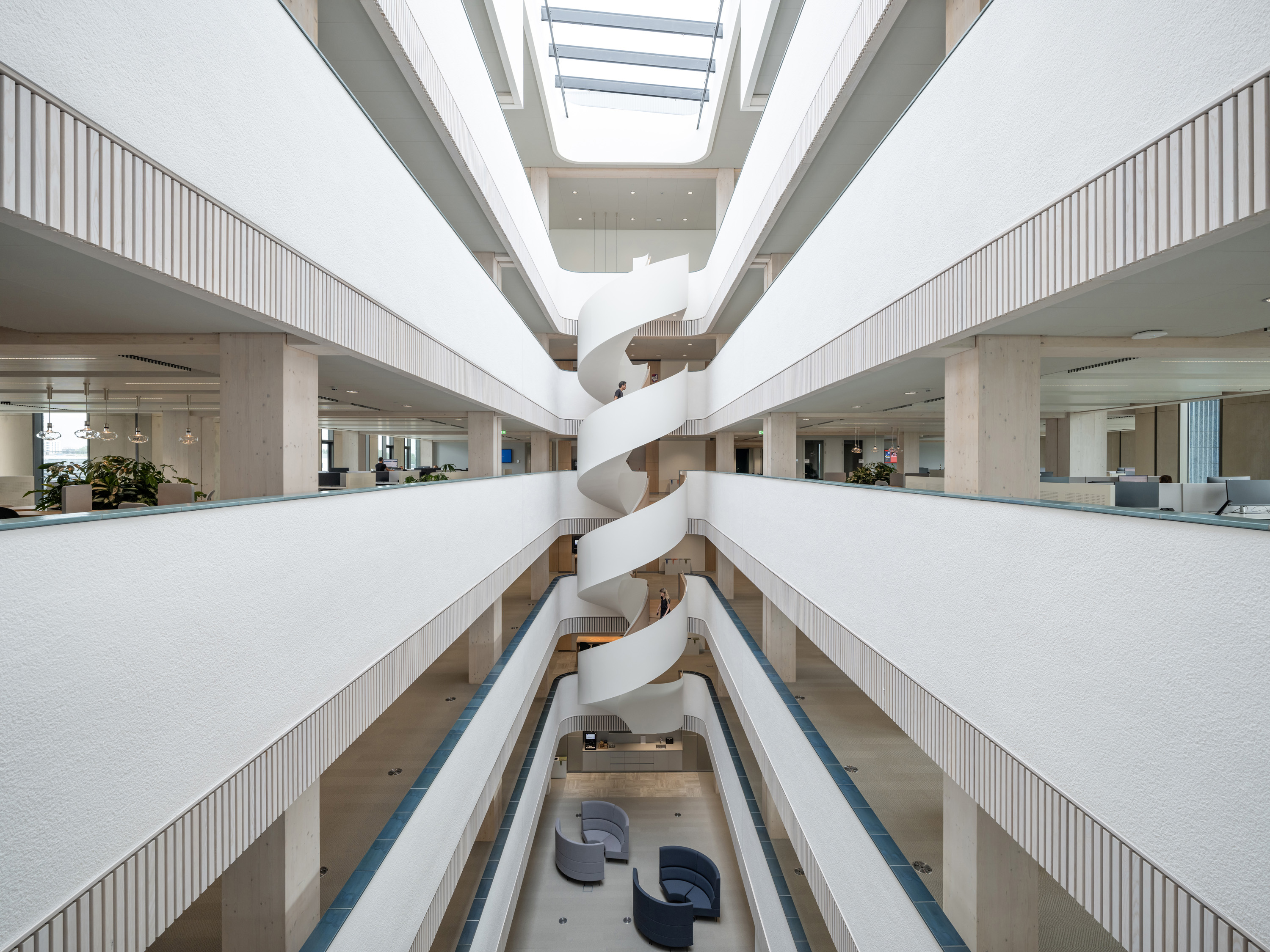 Een stoer gebouw met een zachte uitstraling: dit is enerzijds vertaald in veel groen en rondingen, wat het gebouw iets vriendelijks geeft. Anderzijds geven de keramische reliëftegels in verschillende groen- en blauwtinten het gebouw een robuust karakter. Ook heeft het gebouw een dynamische vorm: het is niet één recht geheel en de drie verspringende delen met schuine daken zijn door middel van twee atria met elkaar verbonden. Daarnaast is het kantoor op een groene manier met de omgeving vervlochten, een verbinding van buiten en binnen. Dit is vanwege klimaatadaptie en biodiversiteit, maar ook vanwege het effect op het welbevinden - biophilic design.