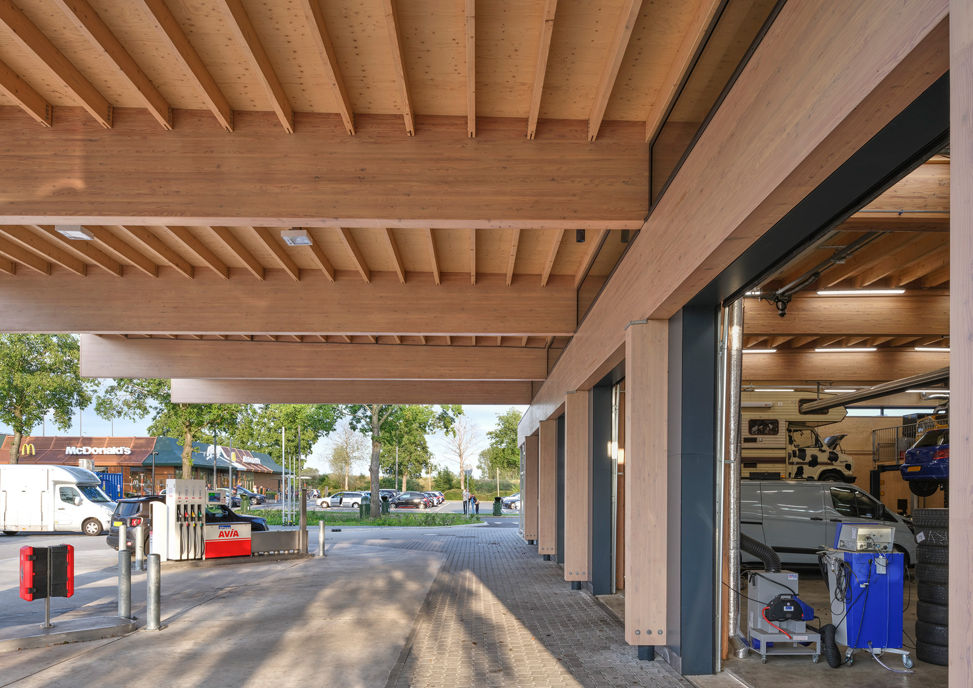 Aan de rand van Purmerend komen servicestation en autoherstelbedrijf samen in een duurzaam ontwerp. Servicestation Verzetslaan vormt een wooden equilibrium dat bestaat uit een voertuigenwerkplaats van ongeveer 350m2 met een aangrenzende lobby, vier autowasboxen en een onbemand tankstation.