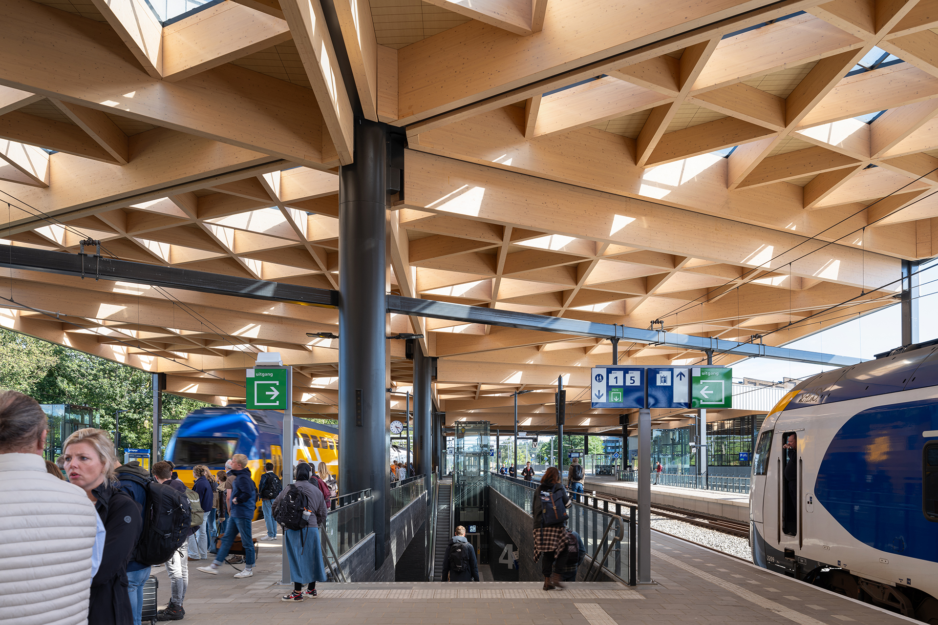 Het nieuwe iconische station Ede-Wageningen is onderdeel van de transformatie van de Spoorzone Ede. De houten kap en toren zijn dé eyecatchers van het gebied. De kap verbindt alle functies van het station en begeleidt de reiziger. De toren zorgt voor herkenbaarheid op grotere schaal. De aangrenzende Veluwe is de inspiratie geweest voor het ontwerp.
