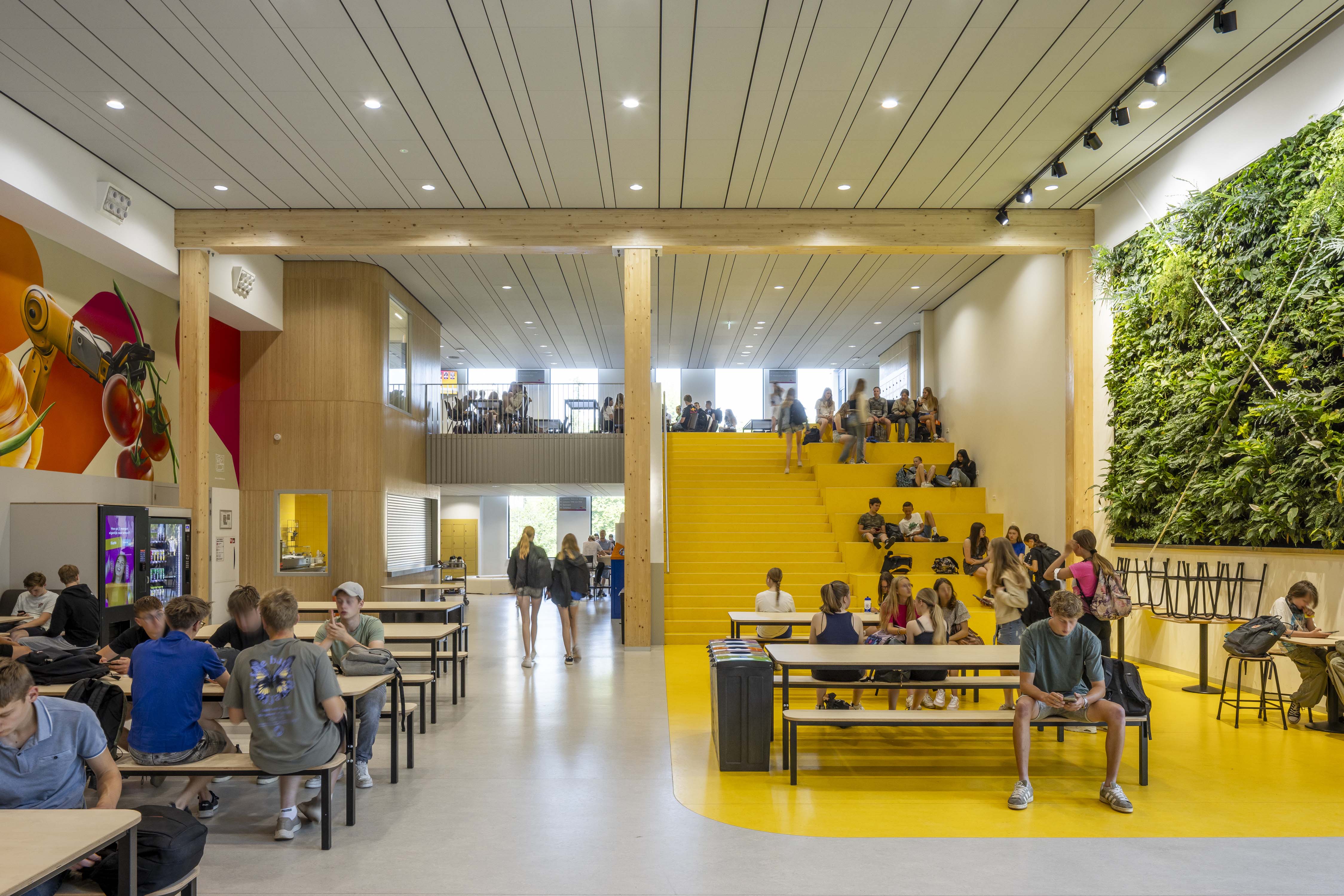 Het nieuwe Vonk in Hoorn is een toekomstbestendig en duurzaam onderwijsgebouw waarin VMBO en MBO samenkomen. De nieuwbouw combineert bestaande en nieuwe bouw tot een flexibele, groene leeromgeving. Dankzij een sterke samenwerking is een inspirerende plek ontstaan die meegroeit met de ontwikkelingen in het onderwijs.